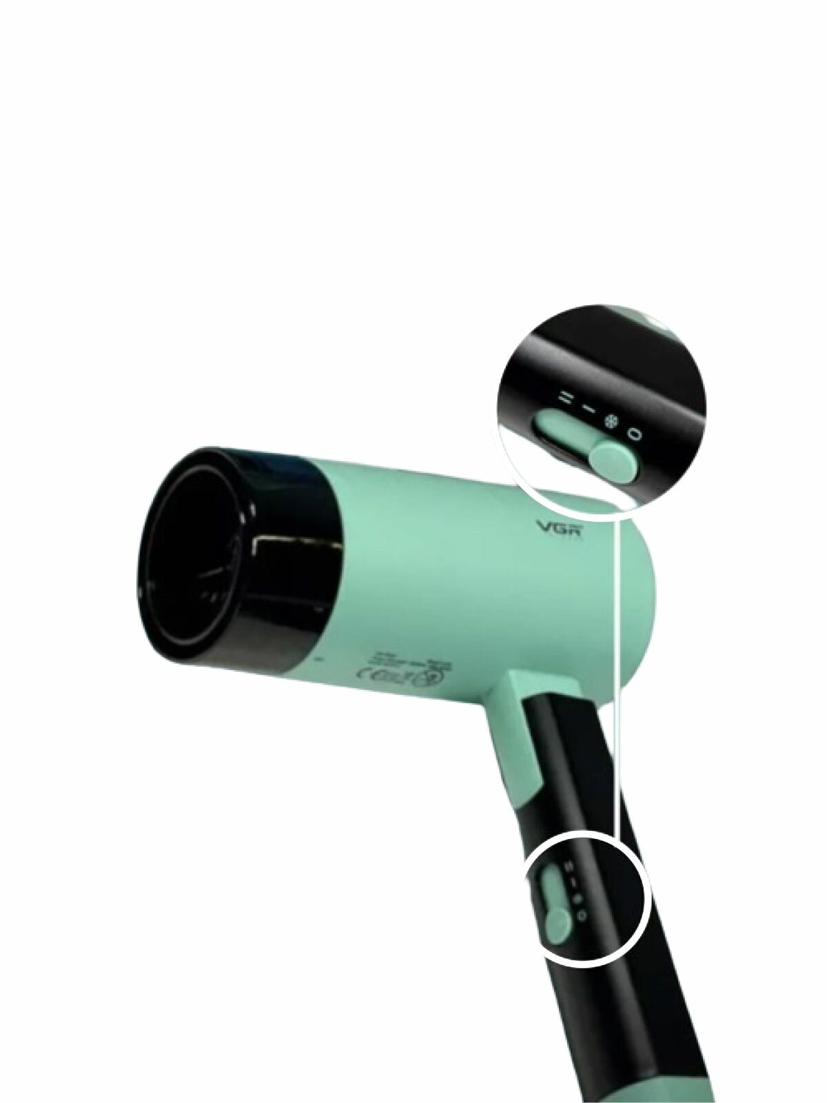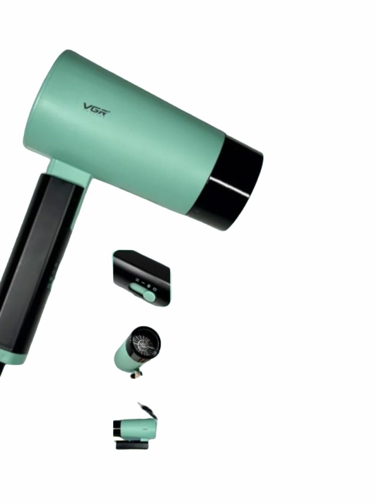 Фен для волос VGR V-432 с насадкой, складная ручка, компактный, дорожный