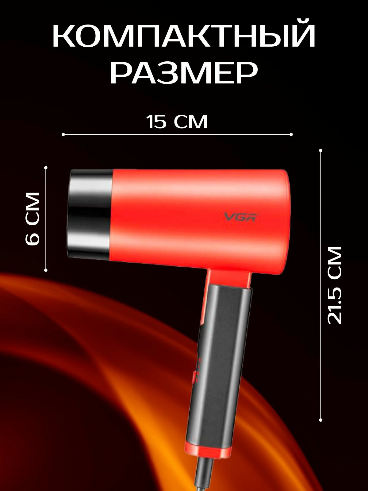 Фен для волос VGR V-432 с насадкой, складная ручка, компактный, дорожный