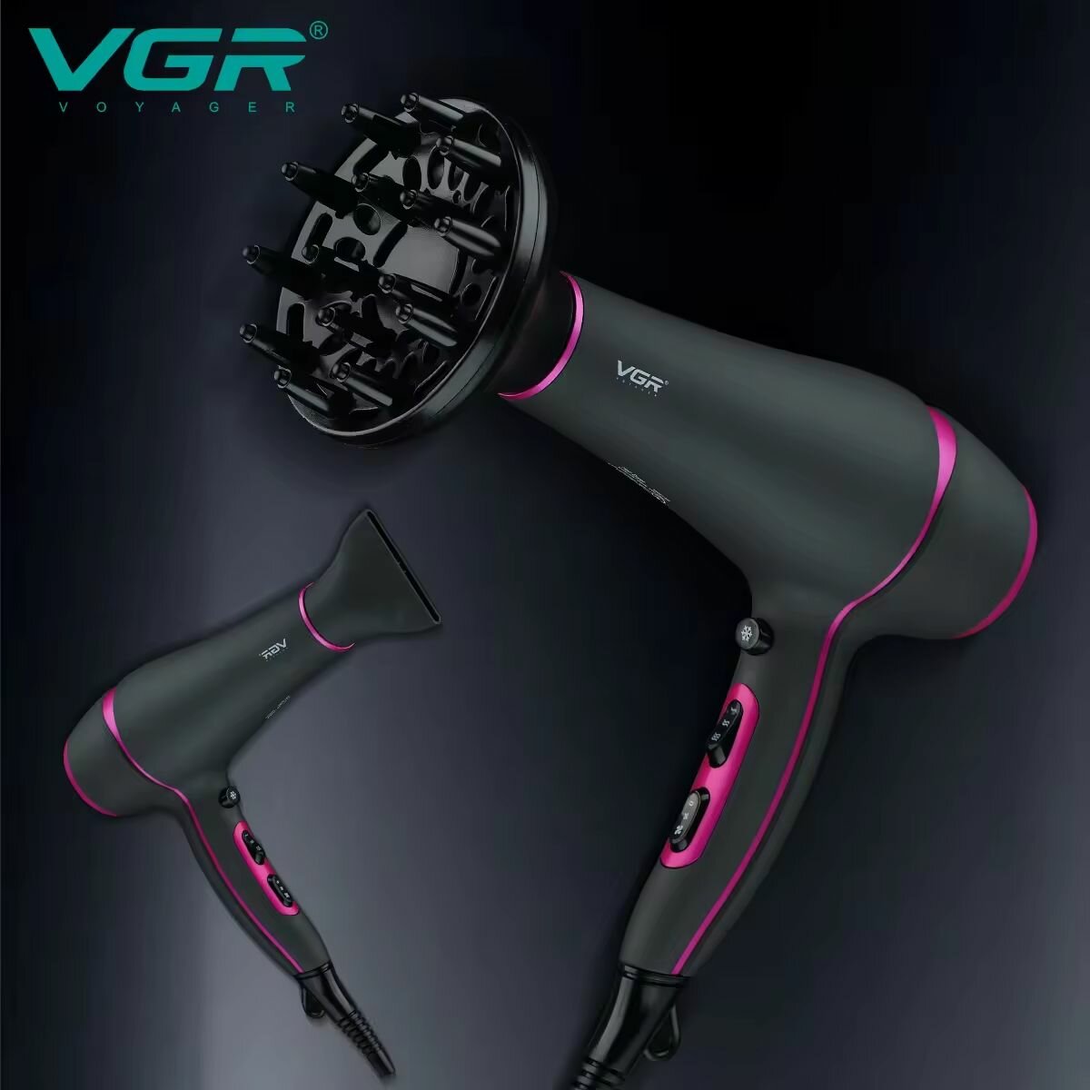 Фен для волос VGR V-402 Professional / Черно-розовый