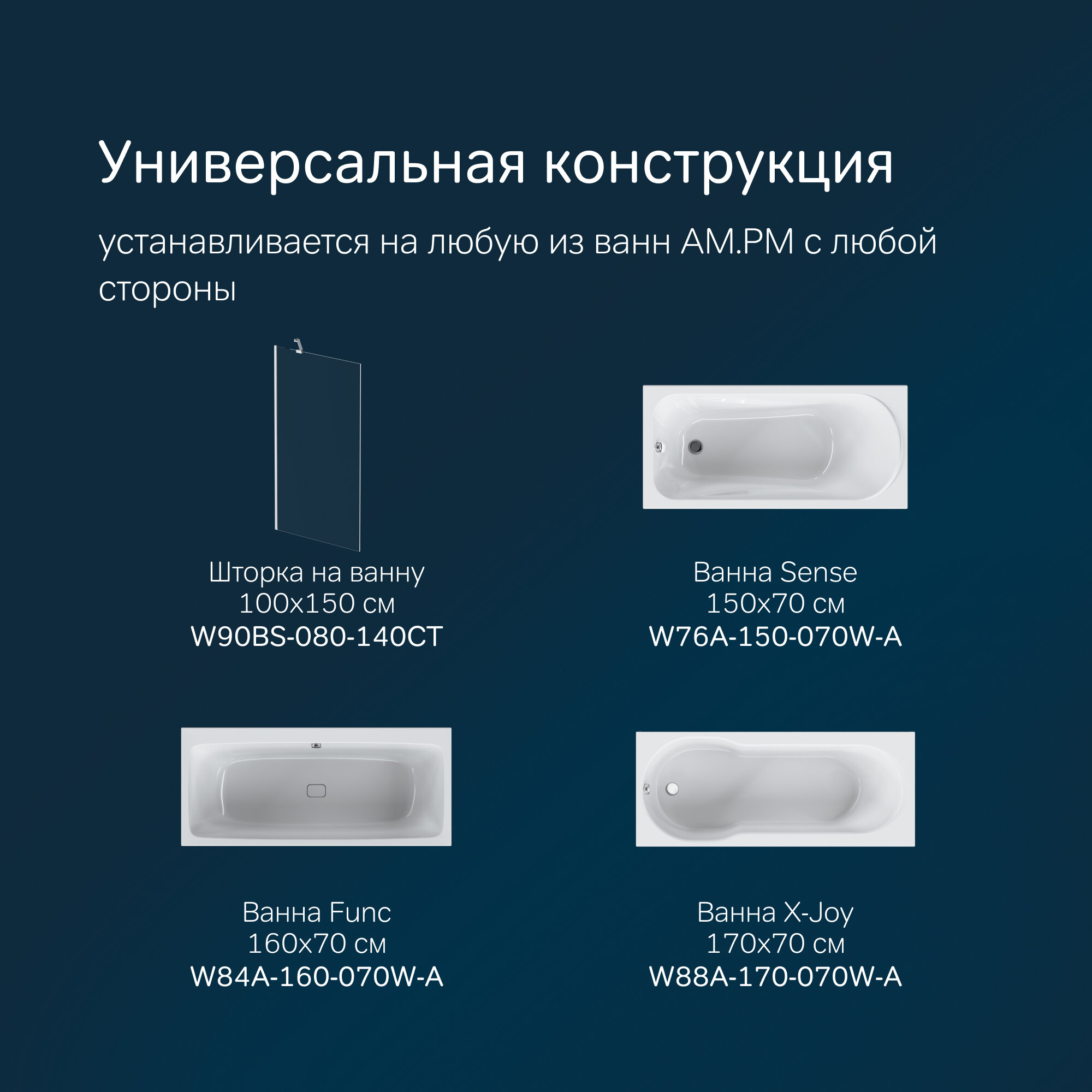 Шторка на борт ванны 80х140 Am.Pm Gem W90BS-080-140CT