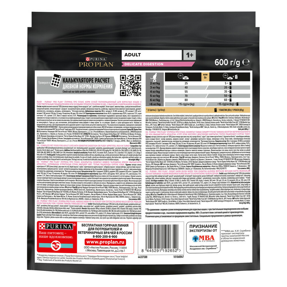 СохранитьСухой корм Pro Plan для кошек с чувствительным пищеварением индейка 400г+200г интересное: