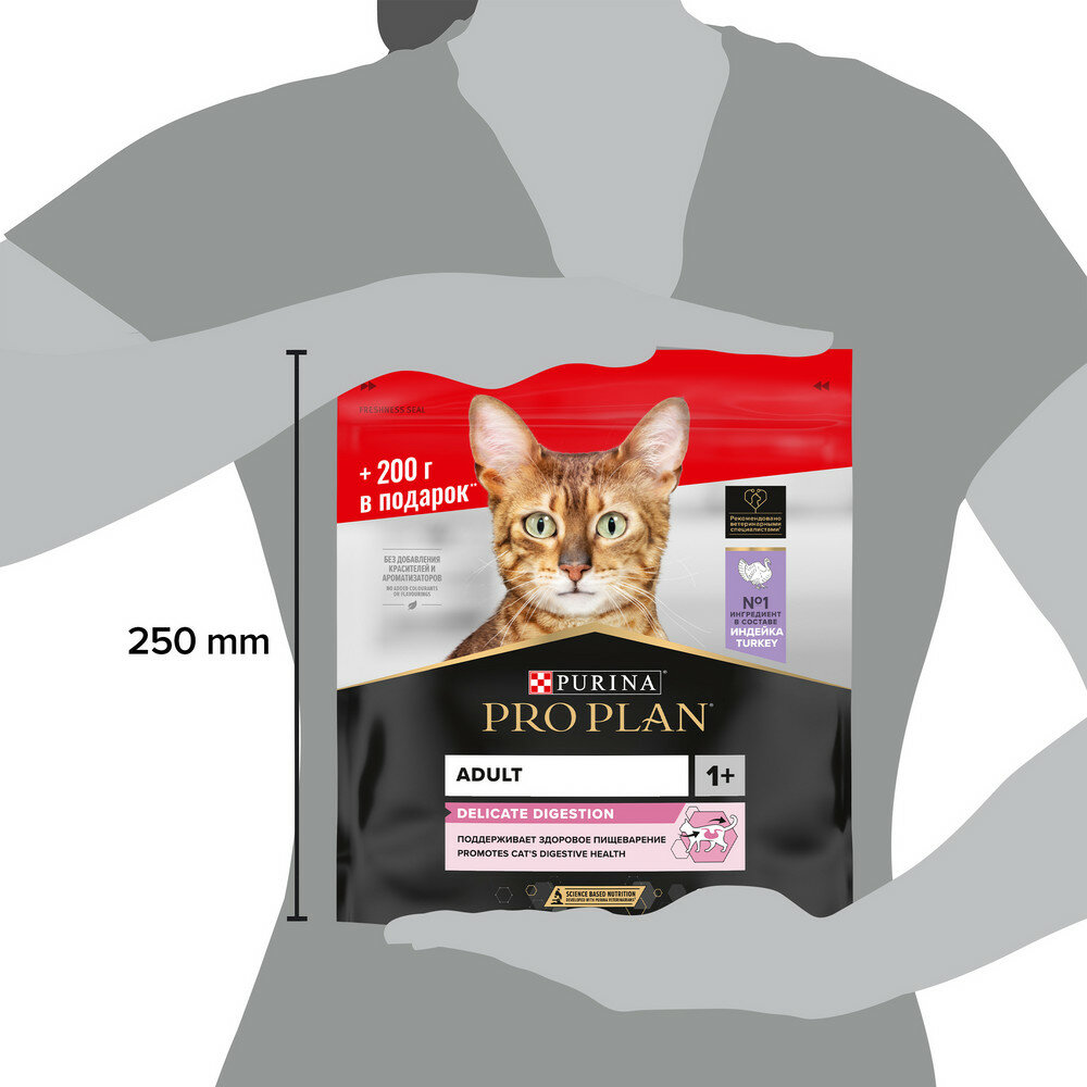 Pro Plan Delicate Сухой корм для кошек с чувствительным пищеварением с индейкой 400г+200г