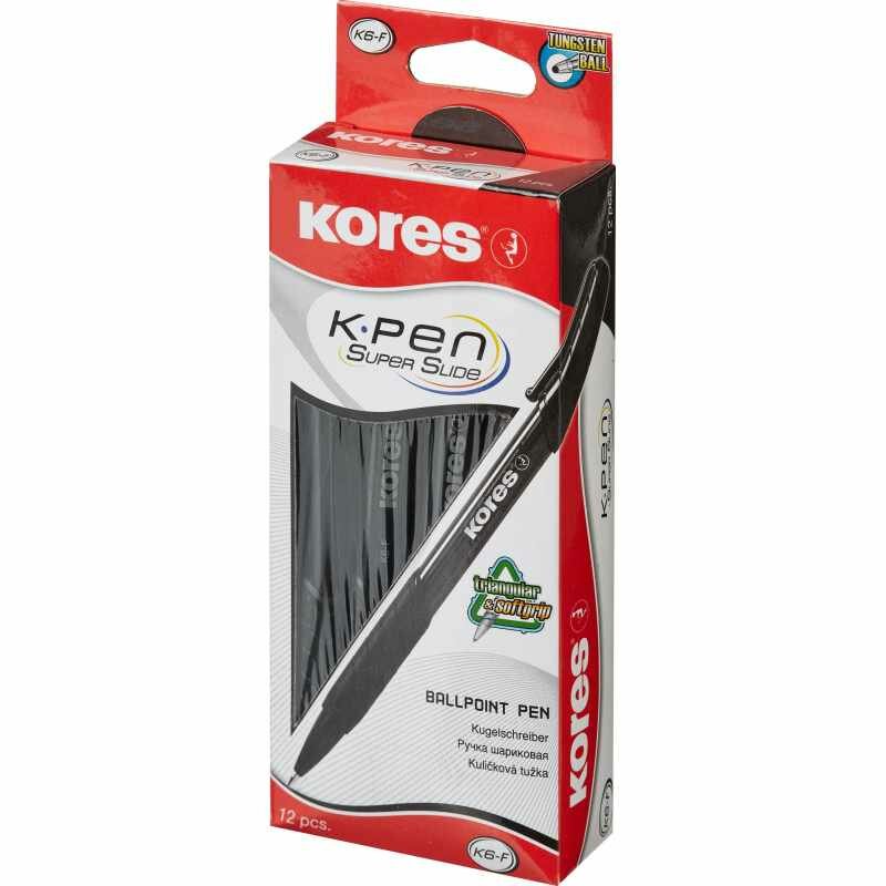 Ручка шариковая автоматическая Kores К6 (0.5мм, трехгранная, черная), 12шт.