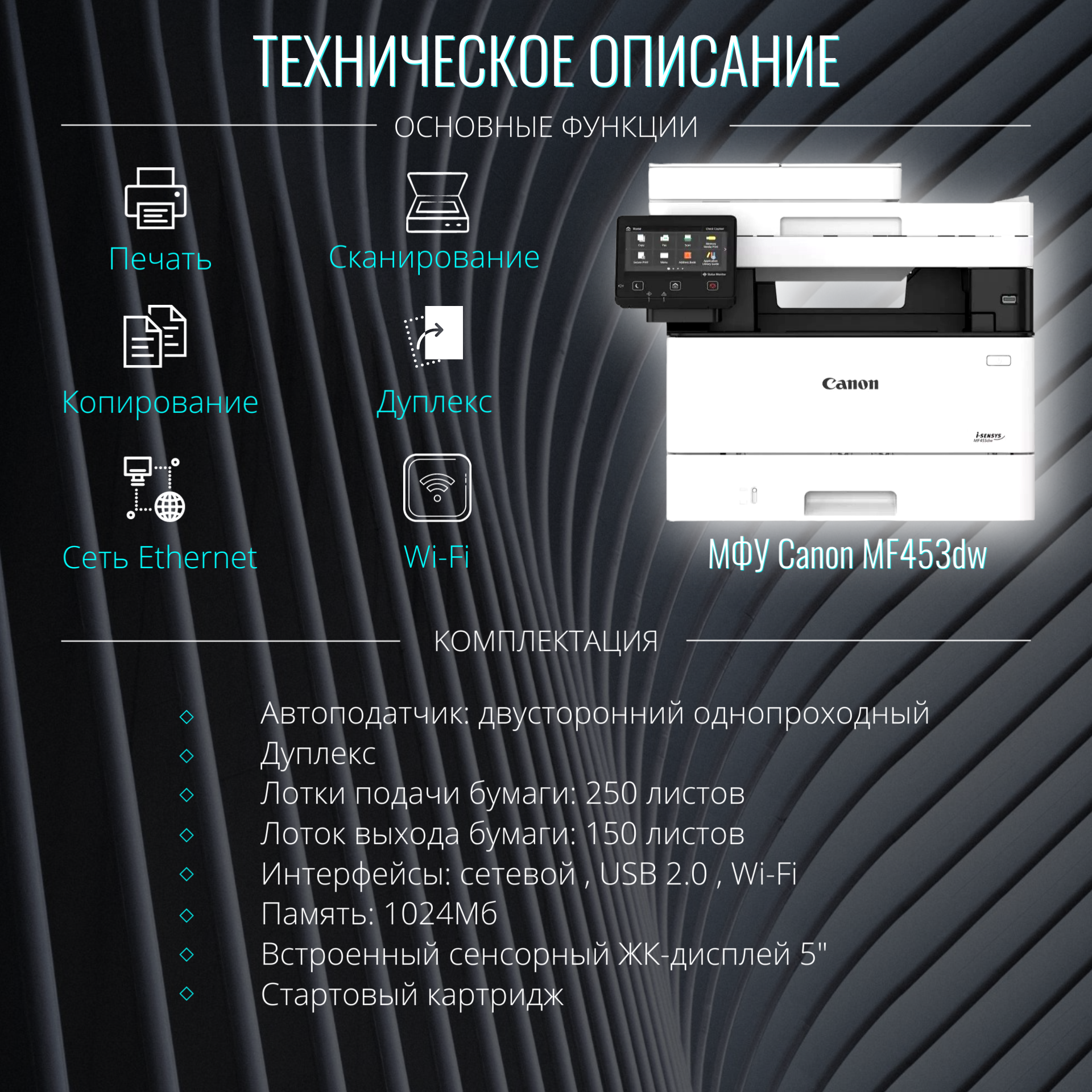 МФУ монохромное Canon i-SENSYS MF453dw 5161C007 A4, 1200dpi, 38ppm, duplex, замена MF443dw