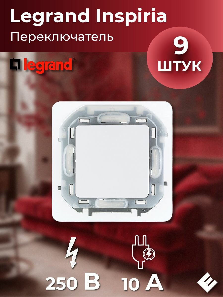 Legrand INSPIRIA Переключатель IP44 10 AX - 250 В - белый (комплект 9шт)