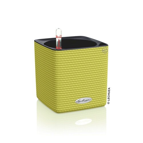 Настольное кашпо с автополивом LECHUZA CUBE Color 14, пластик, зеленый лайм, Ш14 Д14 В14 см