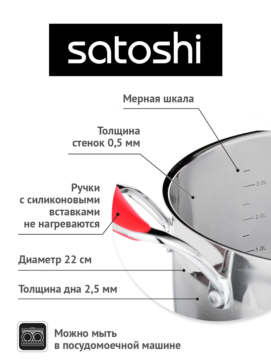 SATOSHI Венрай Кастрюля 22х12см 4, 3л, со стекл. крышкой, индукция, нерж. сталь