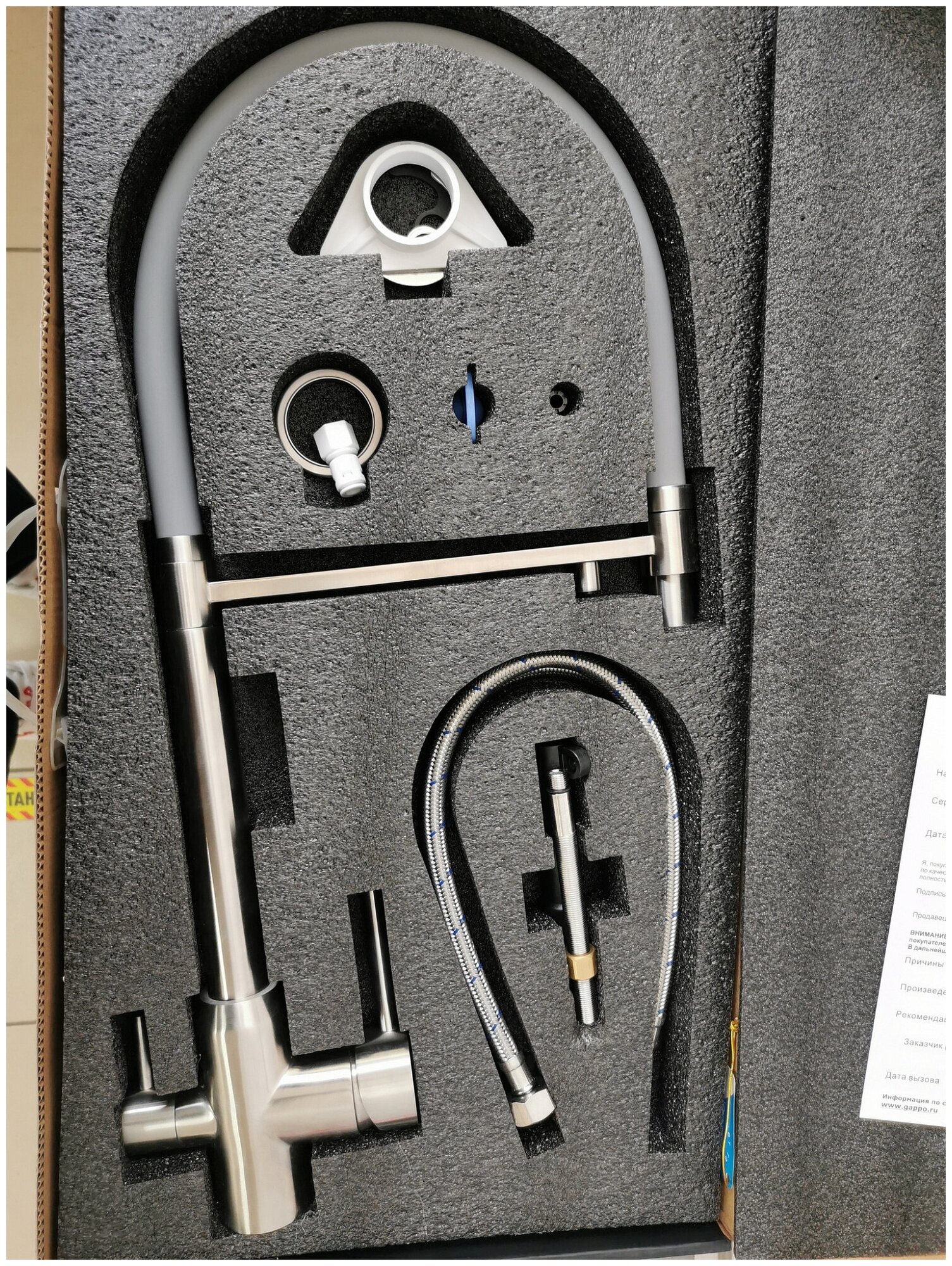 Смеситель для кухни Gappo G4399-75 с гибким изливом, с подключением фильтра, сатин/черный