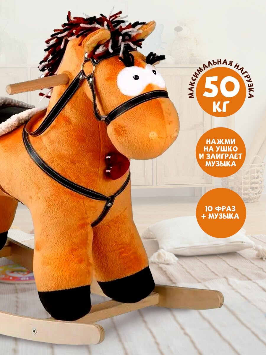 Купить 692-2020 Качалка мягкая "Конь"Свэн" (светло-коричневый, 10фраз, музыка)