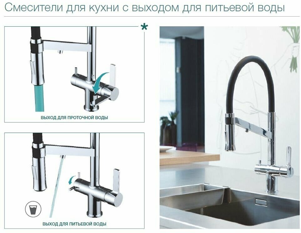 CLEVER Смеситель для кухни комбинированный CHEF WT19 с выходом для питьевой воды 60729 интересное: