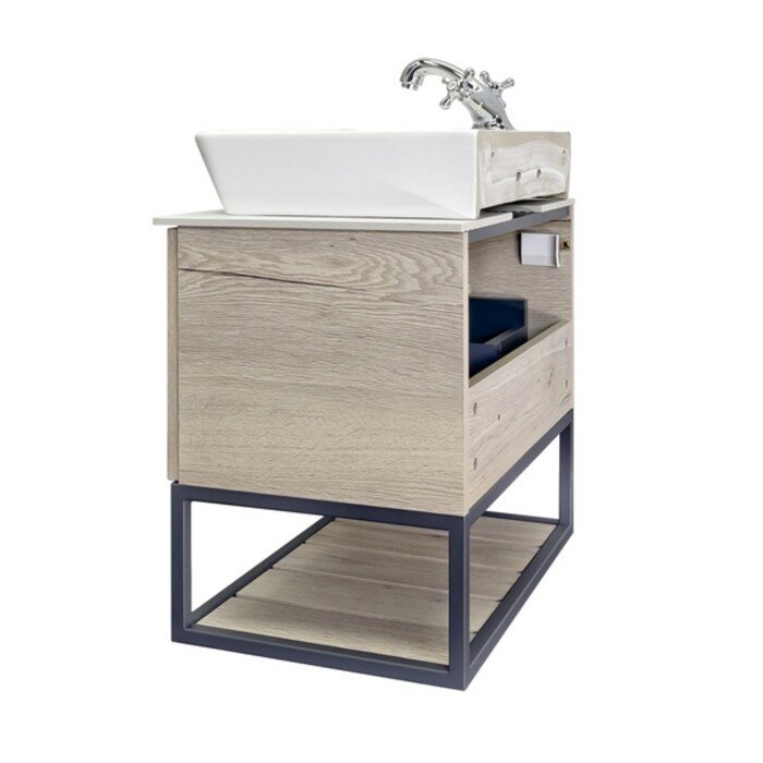 Тумба-умывальник "Порто-60" дуб дымчатый с белой столешницей №8 c рак. COMFORTY 9055RA-50