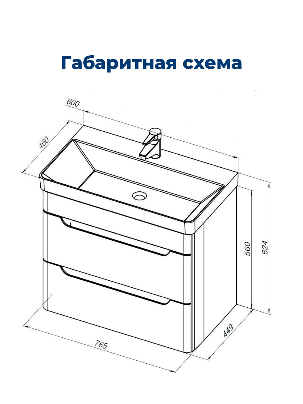 | Комплектация | Тумба София 80 2 ящ. цв.белый глянец (274002), раковина в комплект не входит |