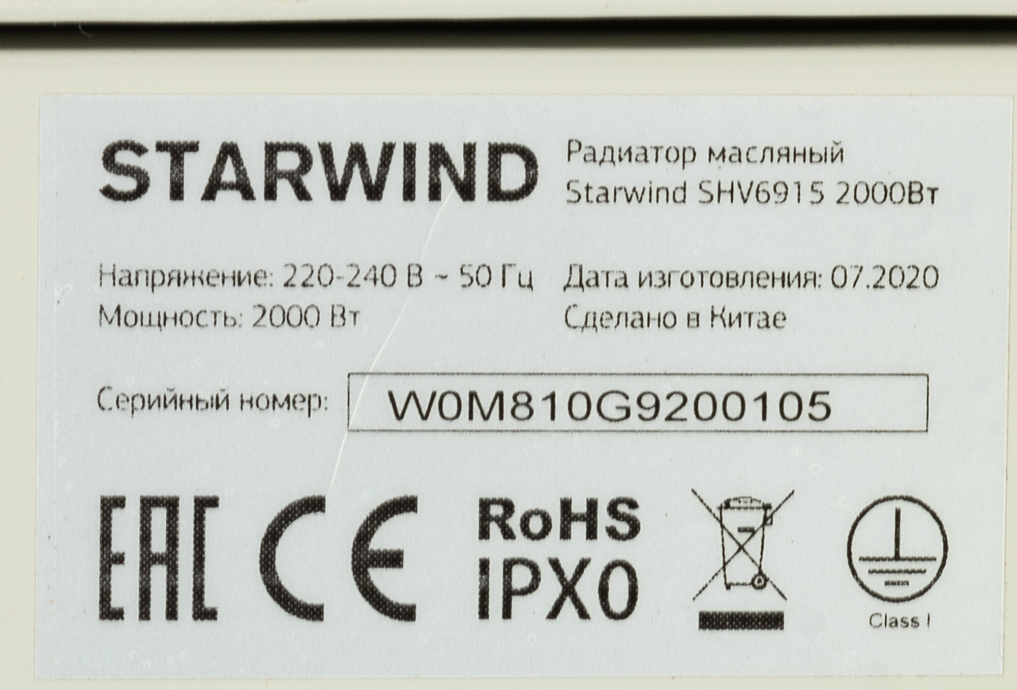 Радиатор масляный Starwind SHV6915 2000Вт белый SHV6915 .