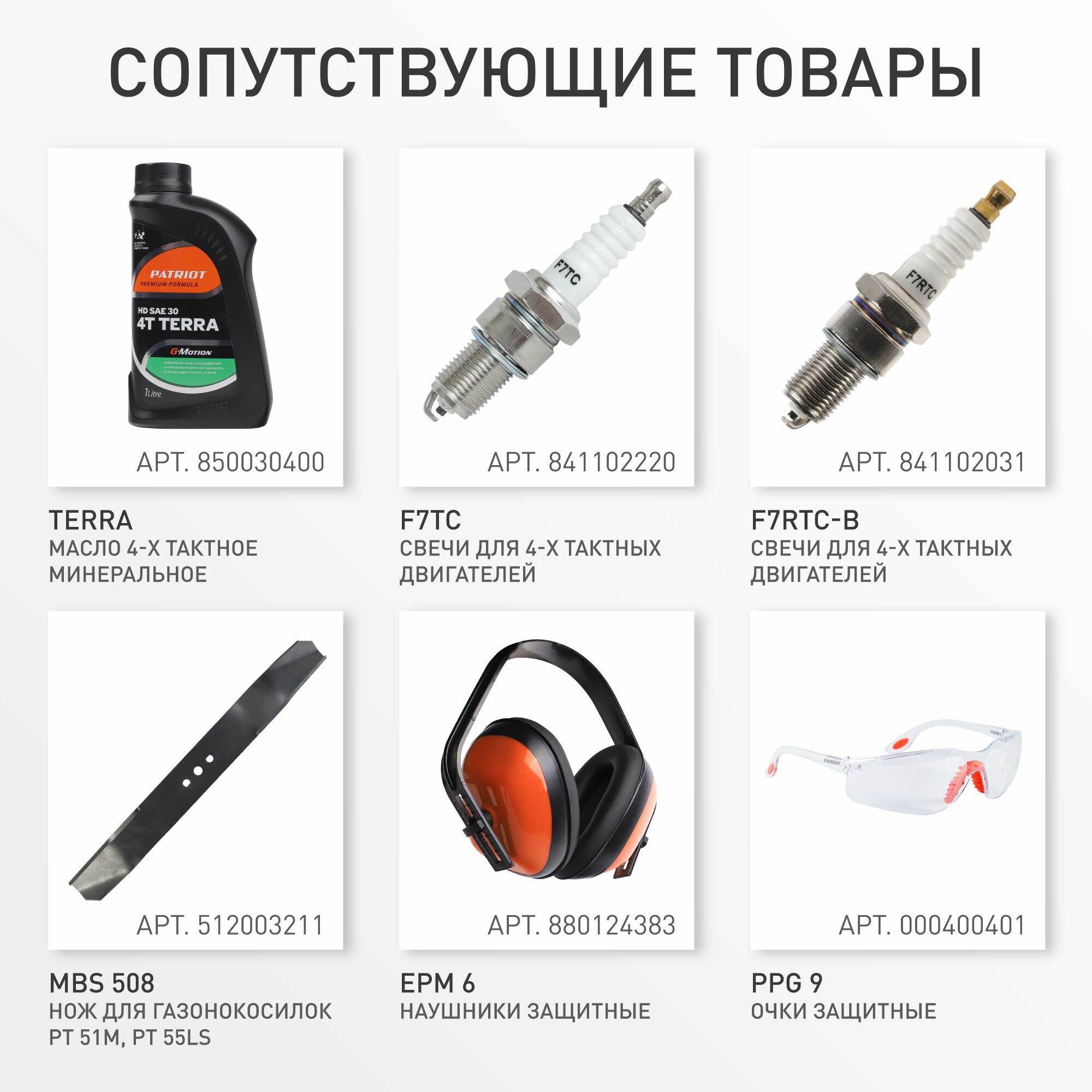 Бензиновая газонокосилка PATRIOT PT 55LS, 4 л.с., 51 см