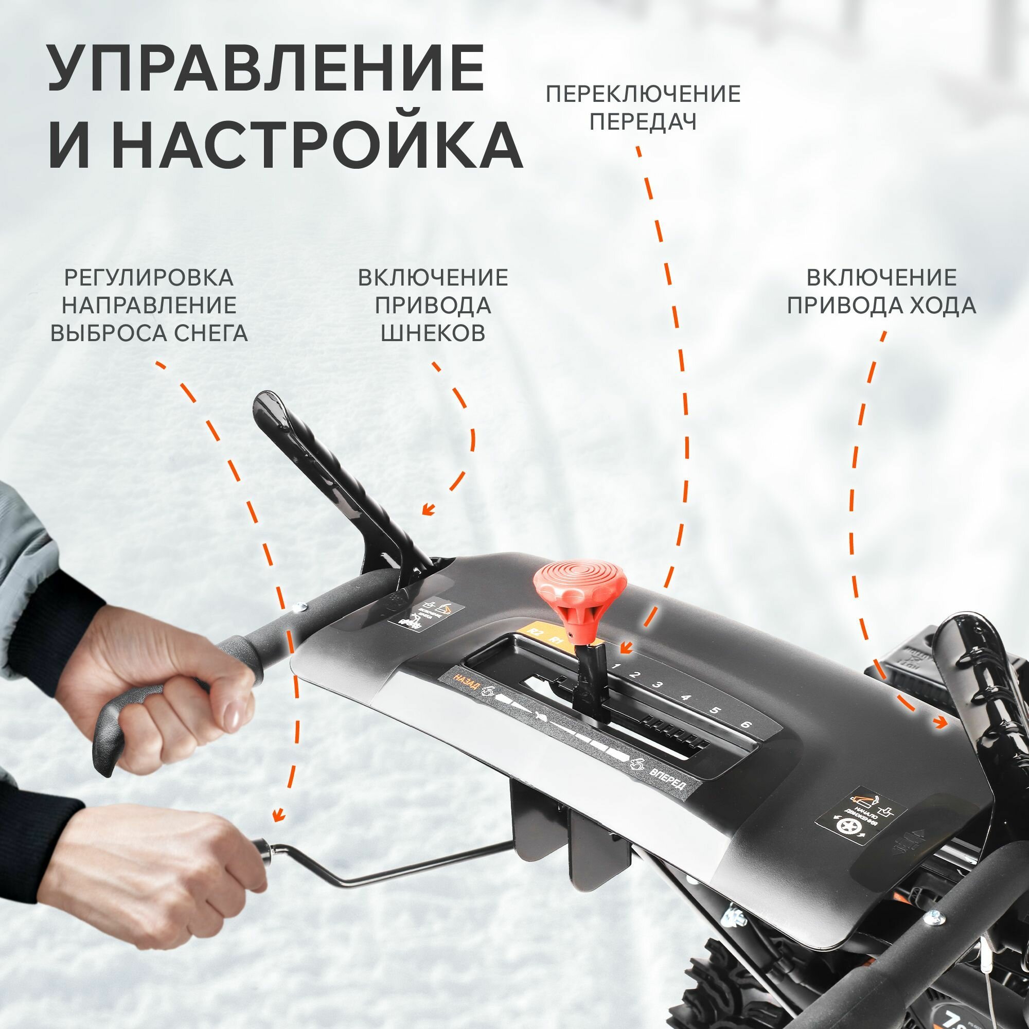 | Регулировка положения желоба выброса снега | механическая / с панели управления |