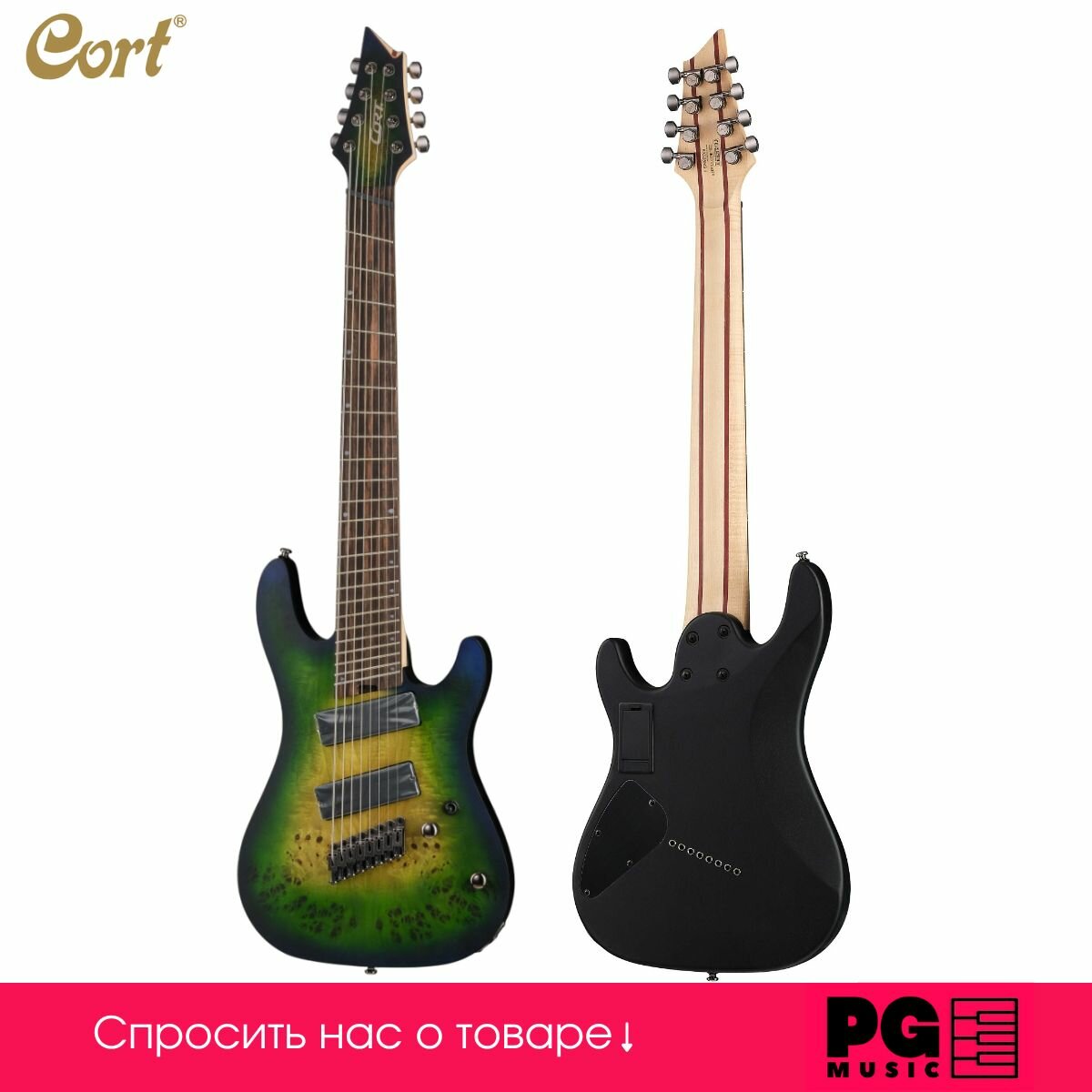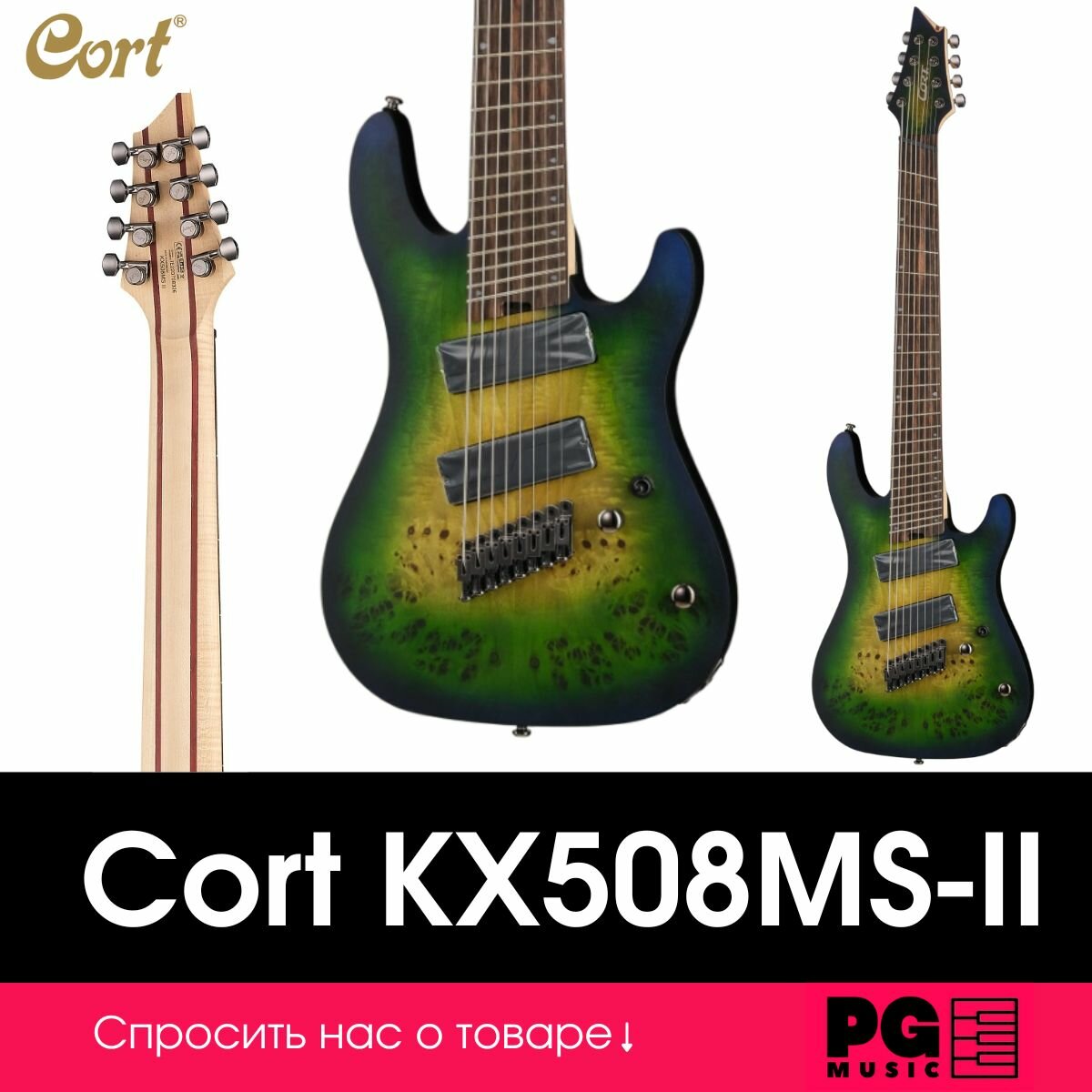 KX508MS-II-MBB KX Series Электрогитара мультимензурная 8-струнная, зеленая, Cort