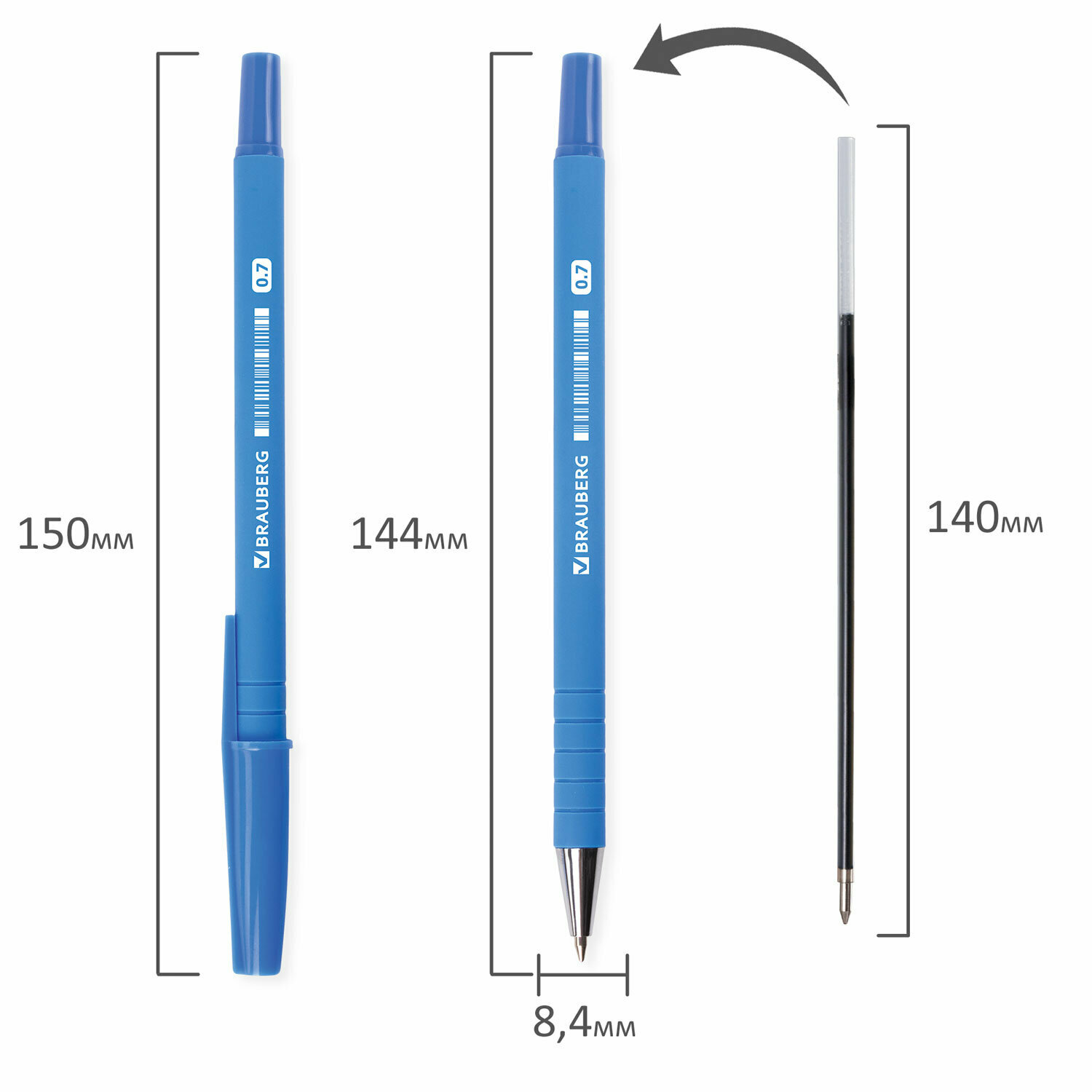Купить Ручка шариковая BRAUBERG "Capital blue", синяя, корпус soft-touch голубой, узел 0,7 мм, линия письма 0,35 мм, 142493, 7 штук