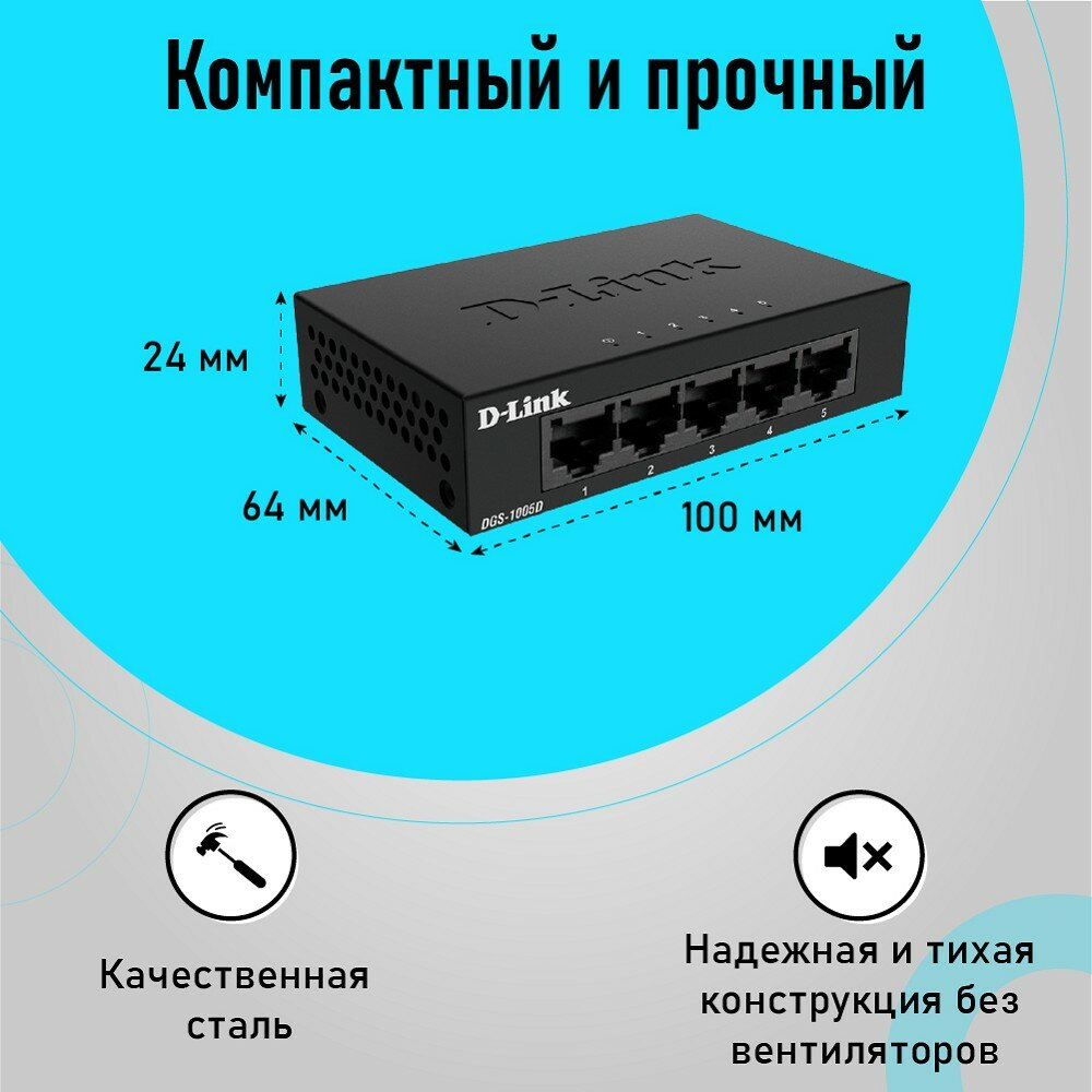 D-Link DGS-1005D J2A Неуправляемый коммутатор с 5 портами 10 100 1000Base-T и функцией энергосбережения