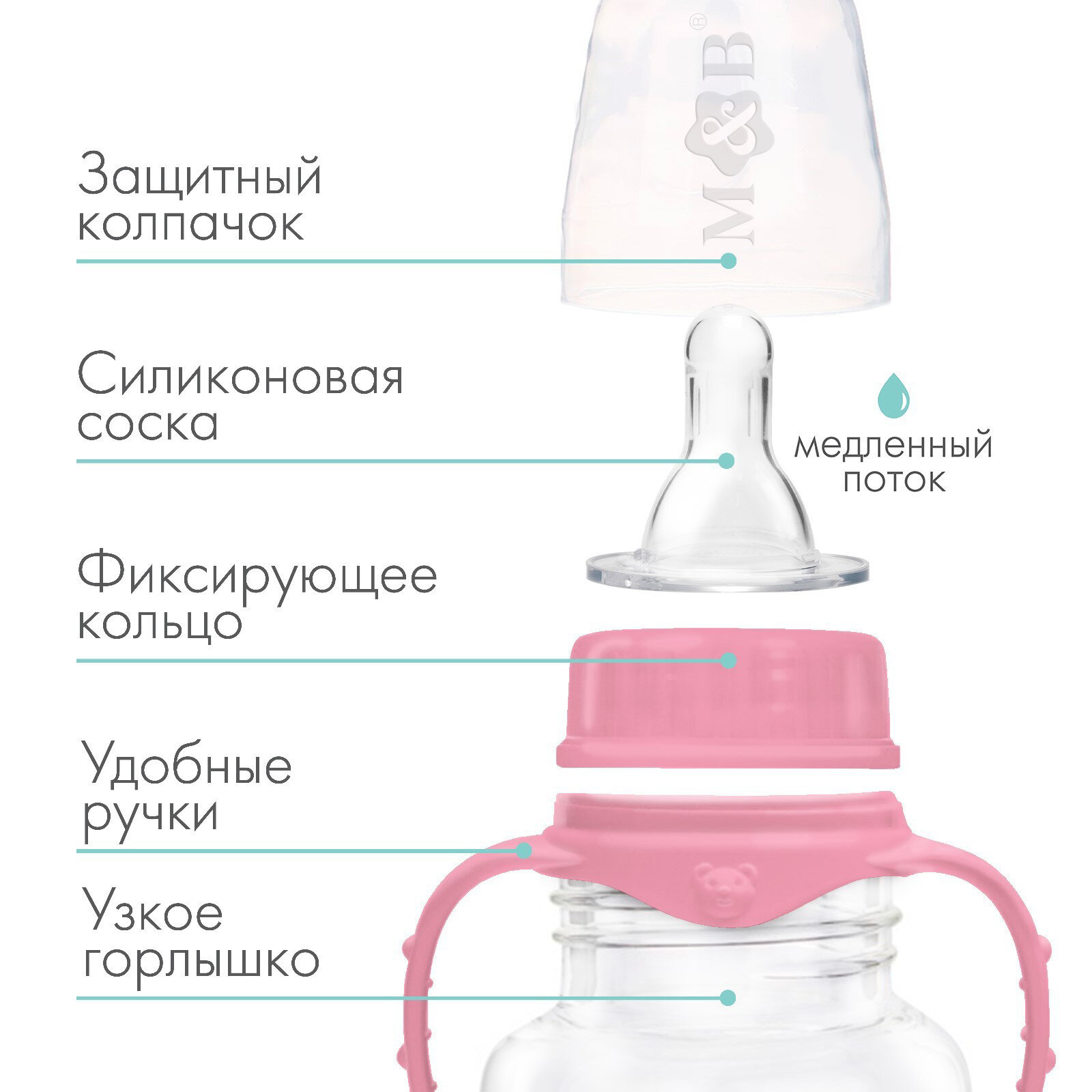 Бутылочка для кормления Mum&Baby классическое горло, приталенная, с ручками, 150 мл, от 0 мес, цвет розовый (150 мл., Приталенная - ручки, б|рис)