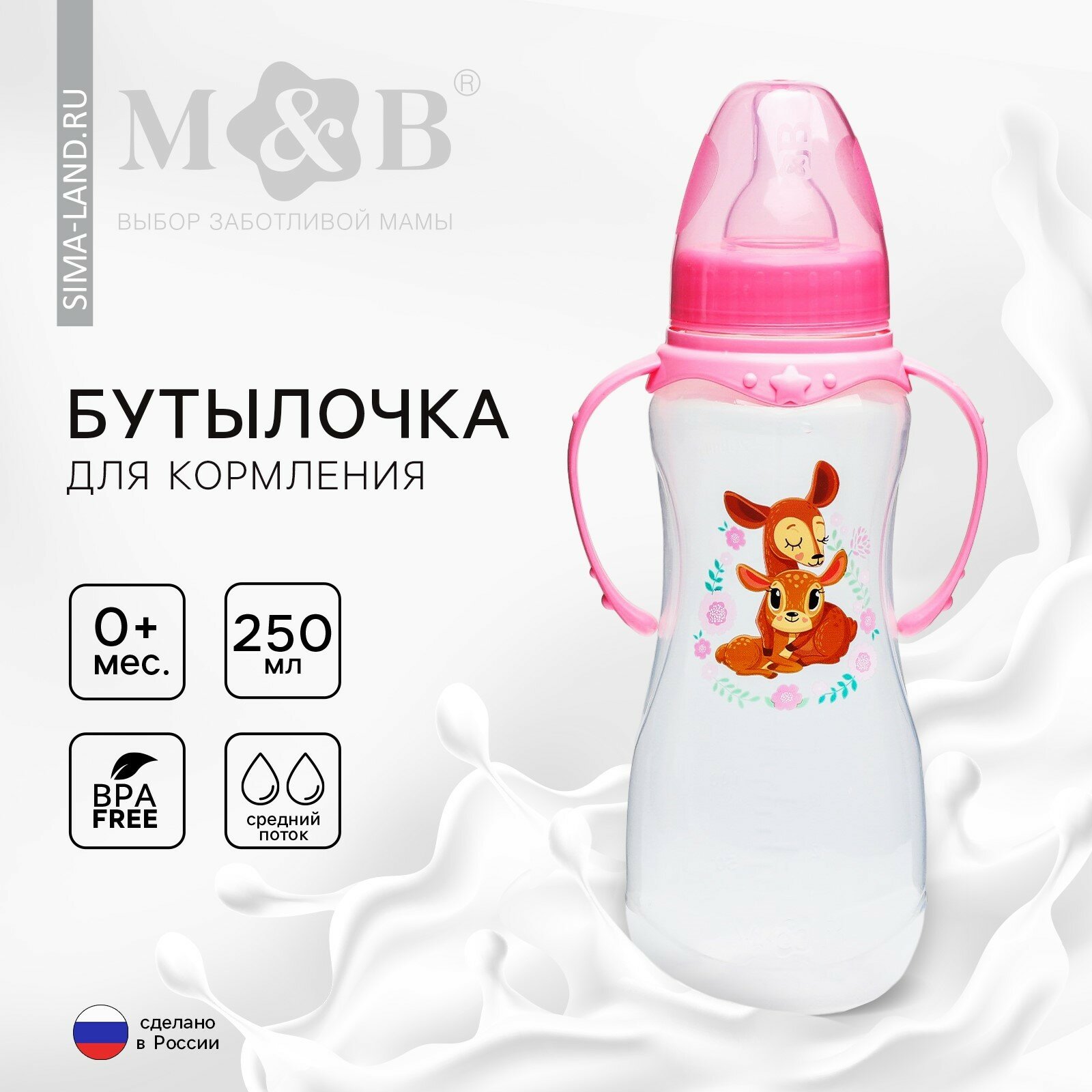 Купить Бутылочка для кормления M&B "Оленята: мамы и малыши", классическое горло, с ручками, от 0 мес., 250 мл, приталенная