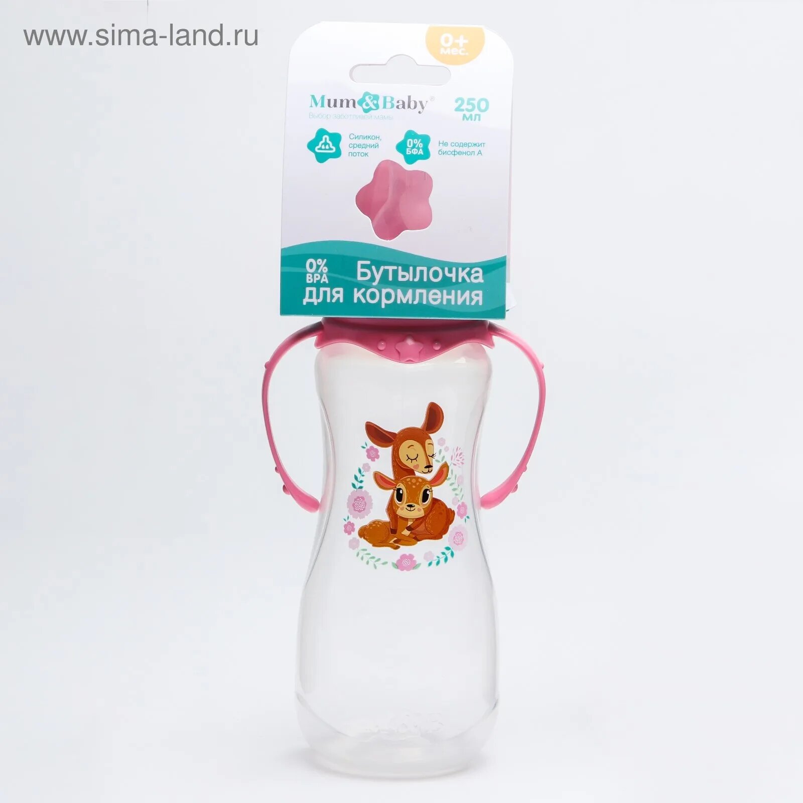 Бутылочка для кормления «Оленята: мамы и малыши» 250 мл приталенная, с ручками, "Mum&Baby", материал полипропилен