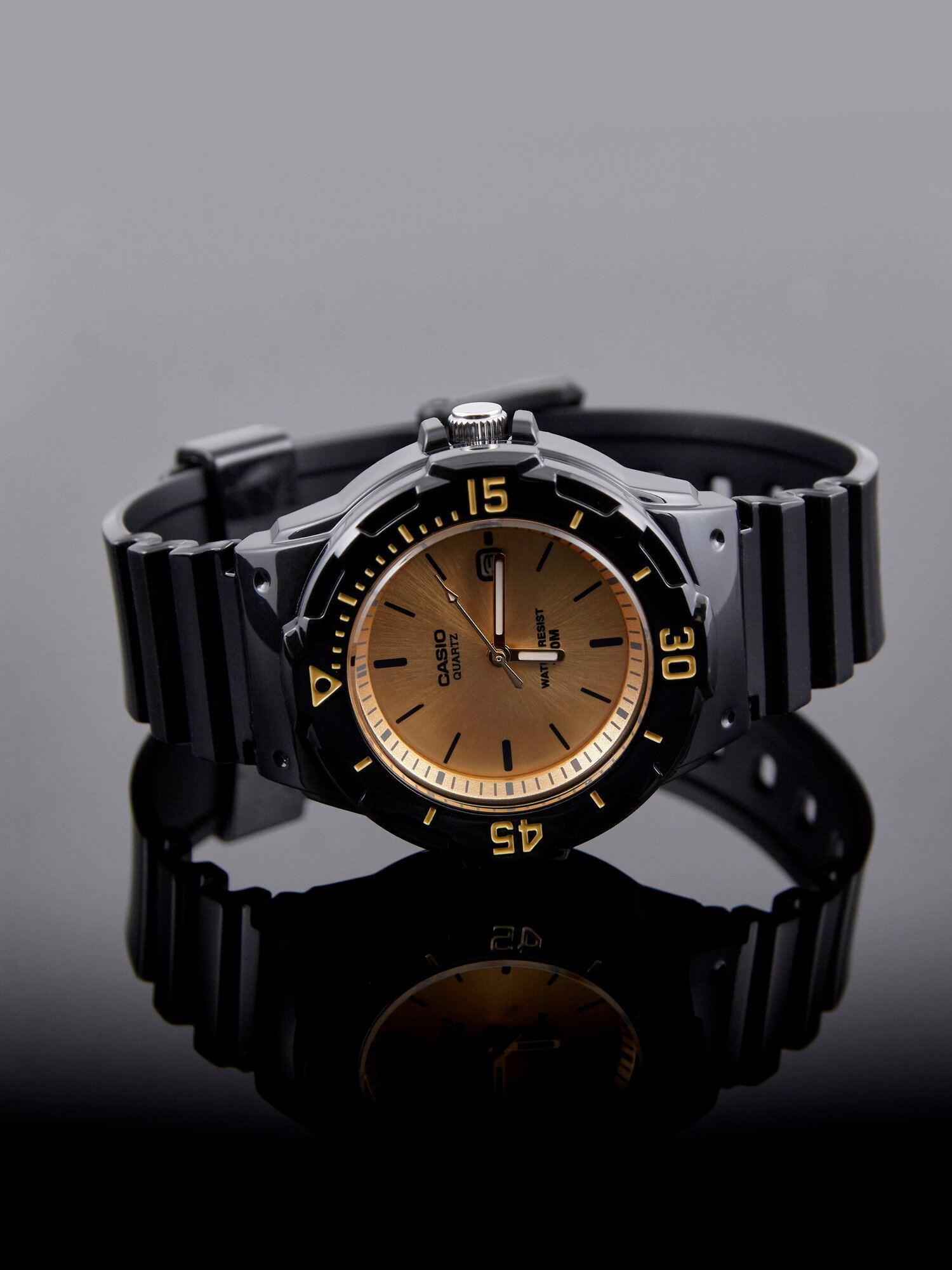 Купить LRW-200H-9E Casio наручные часы кварцевые WR100 (10 атм) женские черный отображение числа поворотный безель, подсветка стрелок акриловое стекло