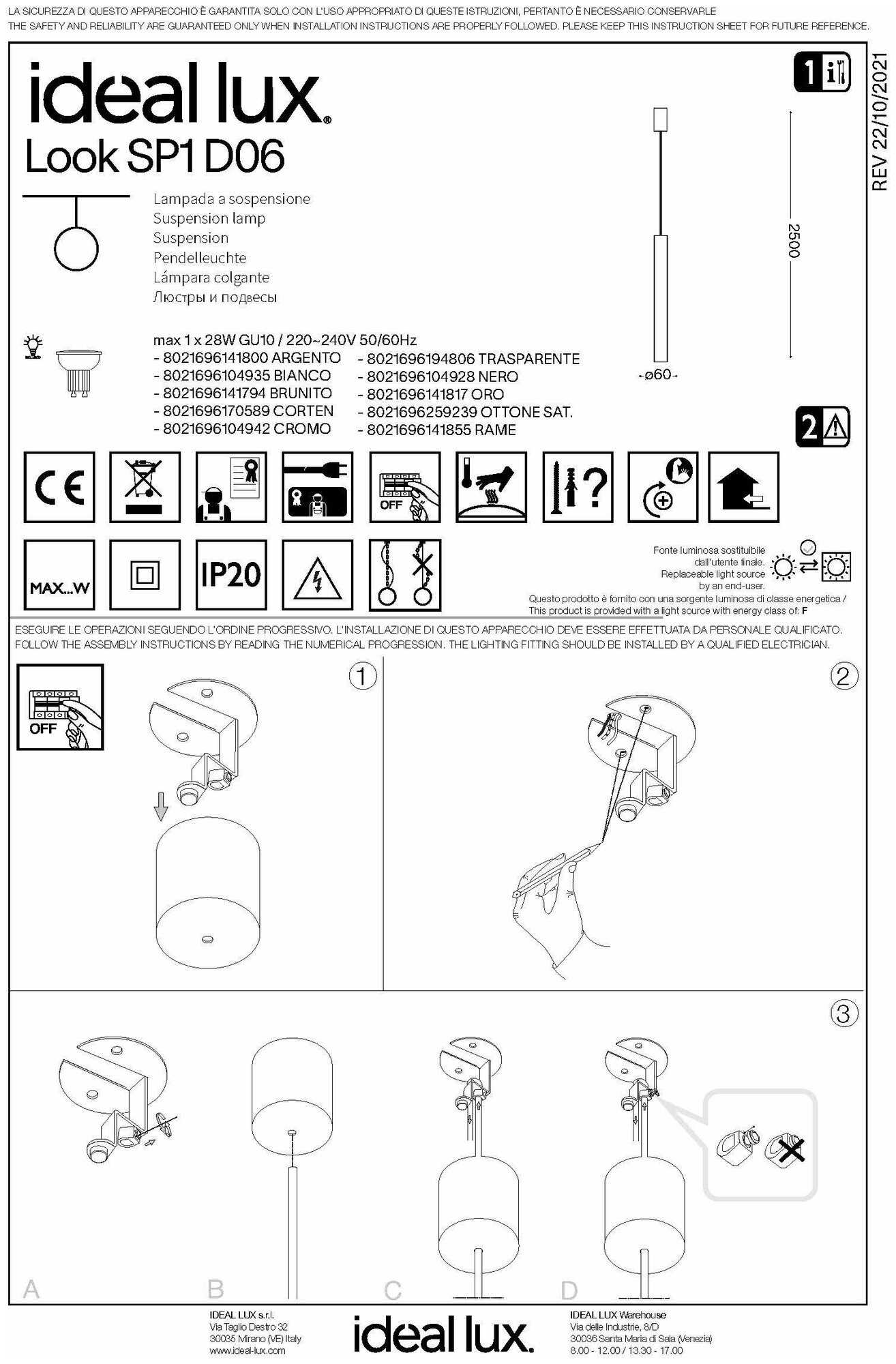 Купить Светильник подвесной ideal lux Look SP1 D06 макс.1x28Вт IP20 GU10 230В Прозрачный/Хром Металл/Стекло 194806.