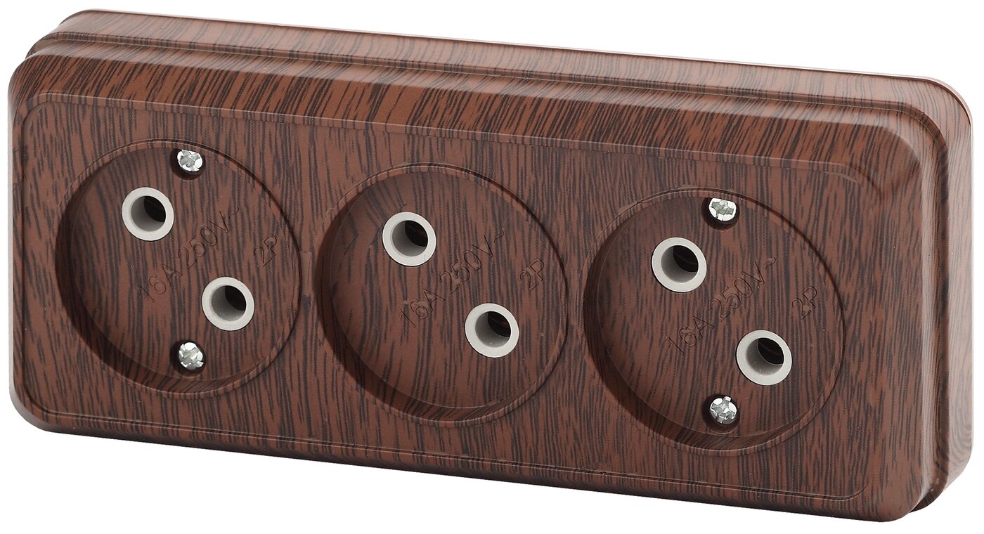 Розетка Intro Quadro 2-205-11 без заземления трехместная 3х2P 16А-250В IP20 открытой установки сосна