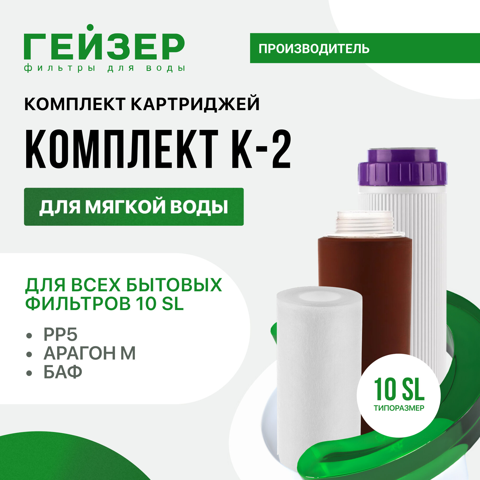 Комплект картриджей для фильтра Гейзер Классик "К-2", сменный, для мягкой воды / гейзер 3 / Арагон