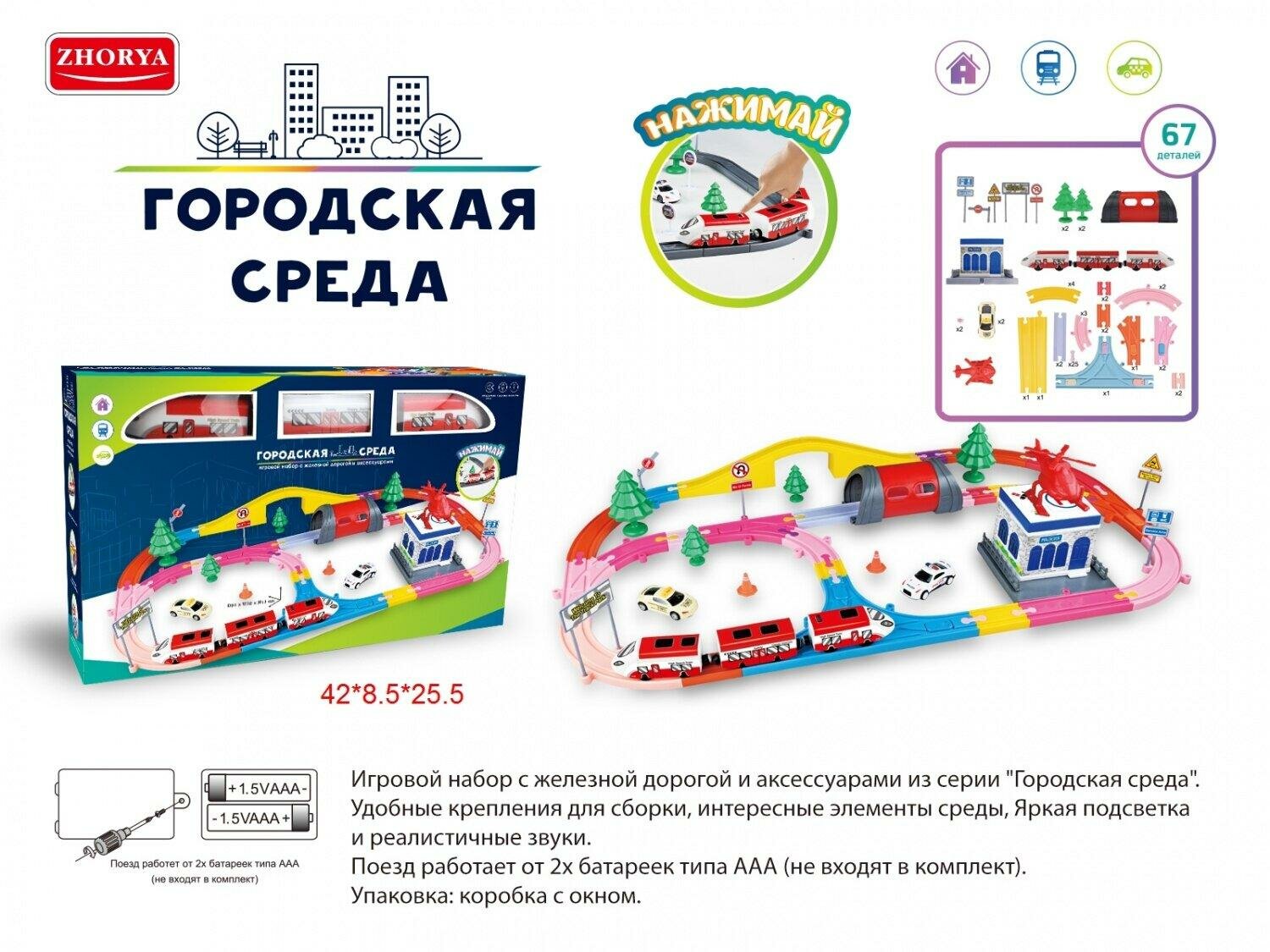 Zhorya Железная дорога с тоннелем 68 деталей, свет, звук ZYB-B3313 с 3 лет