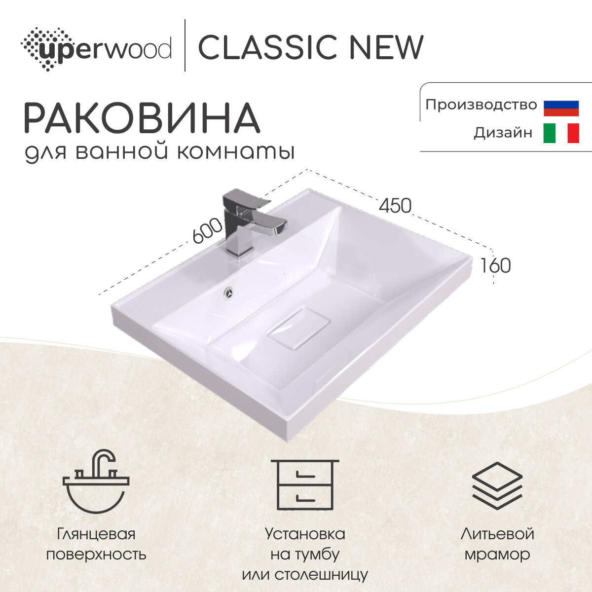 Раковина для ванной комнаты Uperwood Classic New 60х45х16,3 см, с декоративной крышкой для слива интересное: