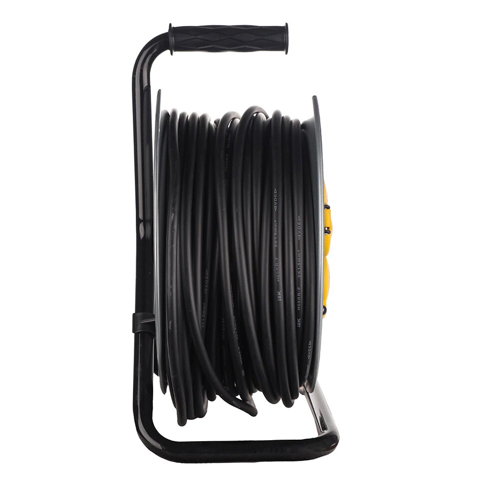 Удлинитель 4-мест 50м КГ 3*1,5 черный катушка IP44 IEK