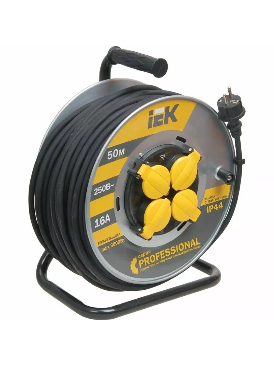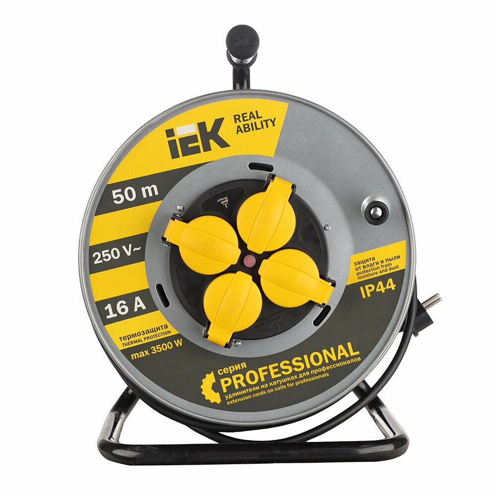 Купить Удлинитель на мет. катушке 4х50м с заземл. 16А IP44 УК50 "Professional" с термозащ. КГ 3х1.5, IEK WKP16-16-04-50-44 (1 шт.)