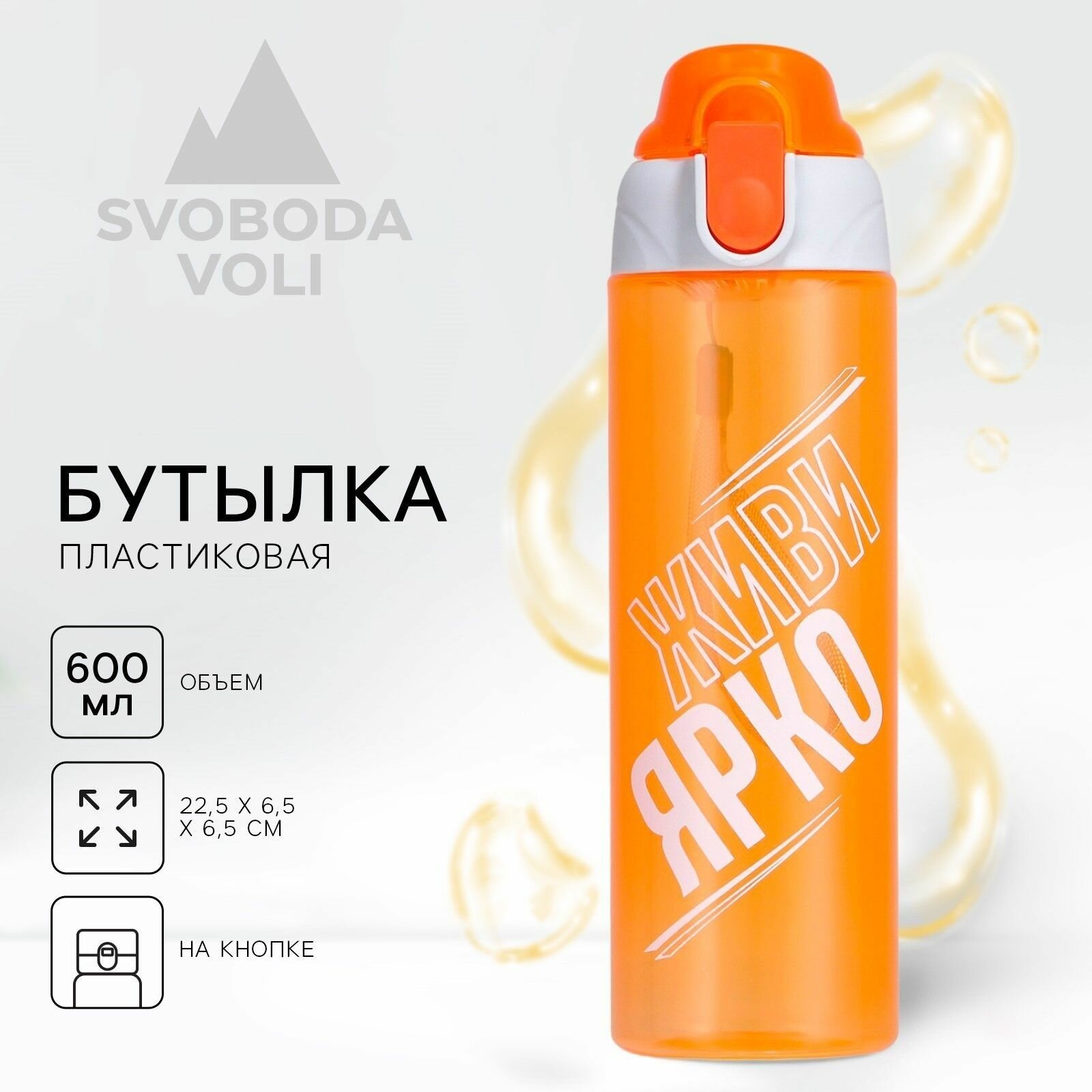 Купить SVOBODA VOLI Бутылка для воды пластиковая SVOBODA VOLI «Живи ярко», 600 мл, оранжевая