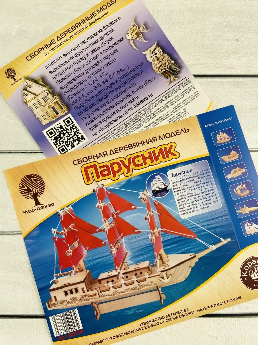 Деревянный конструктор Парусник Орел Корабль из дерева