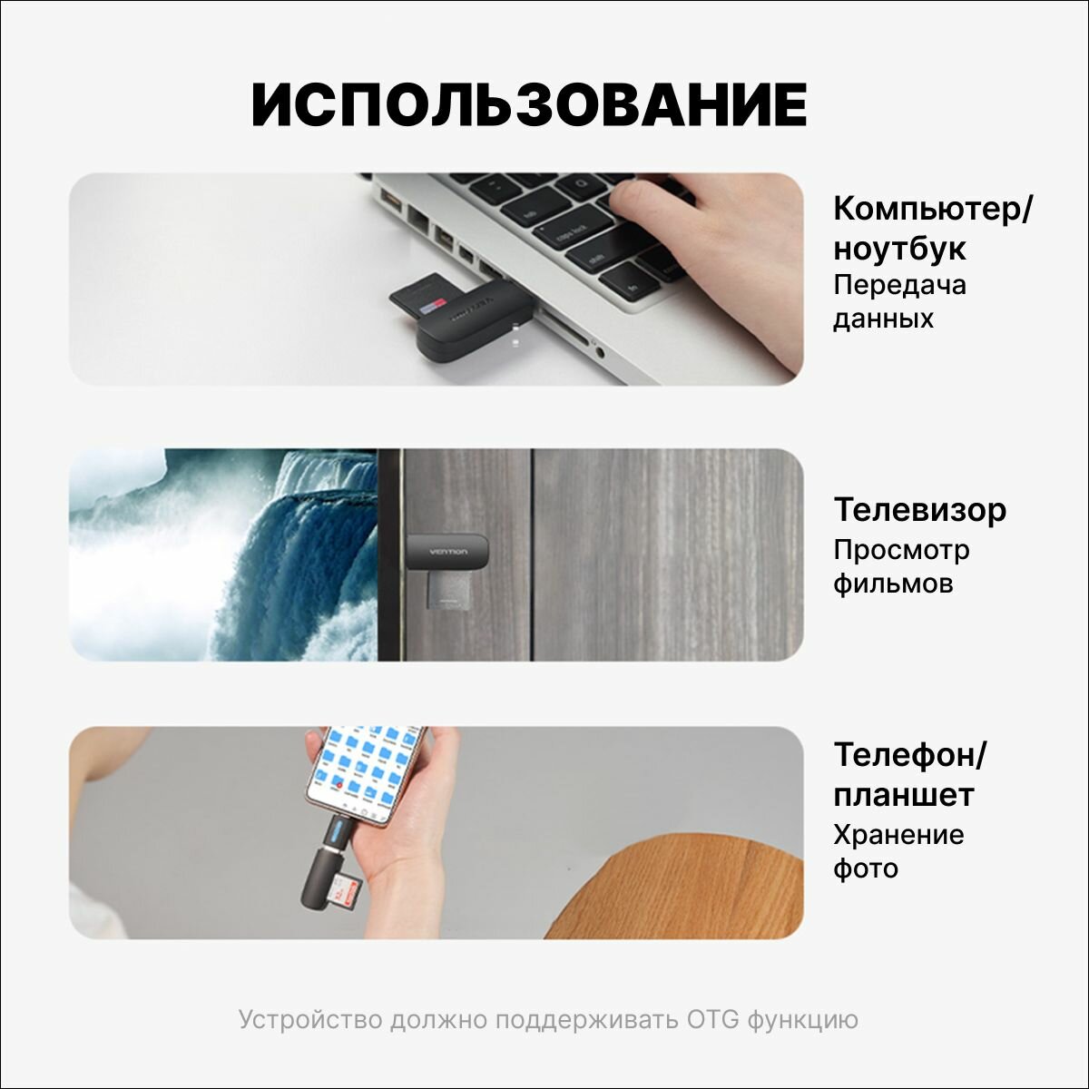 Картридер Vention USB 3.0 (SD+TF) Черный Vention USB 3.0 (SD+TF) (CLGB0) интересное: