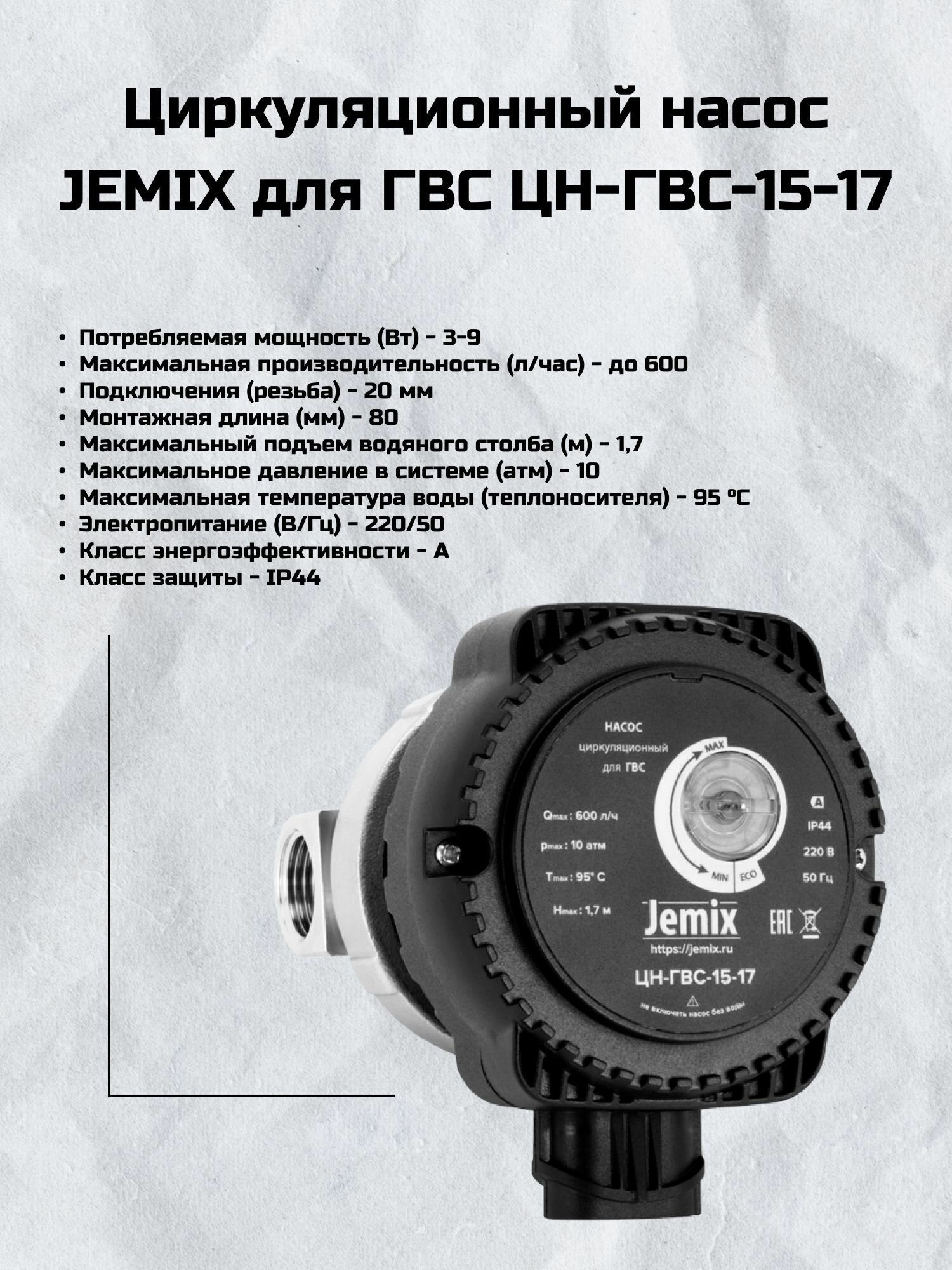 Циркуляционный насос JEMIX ЦН-ГВС-15-17