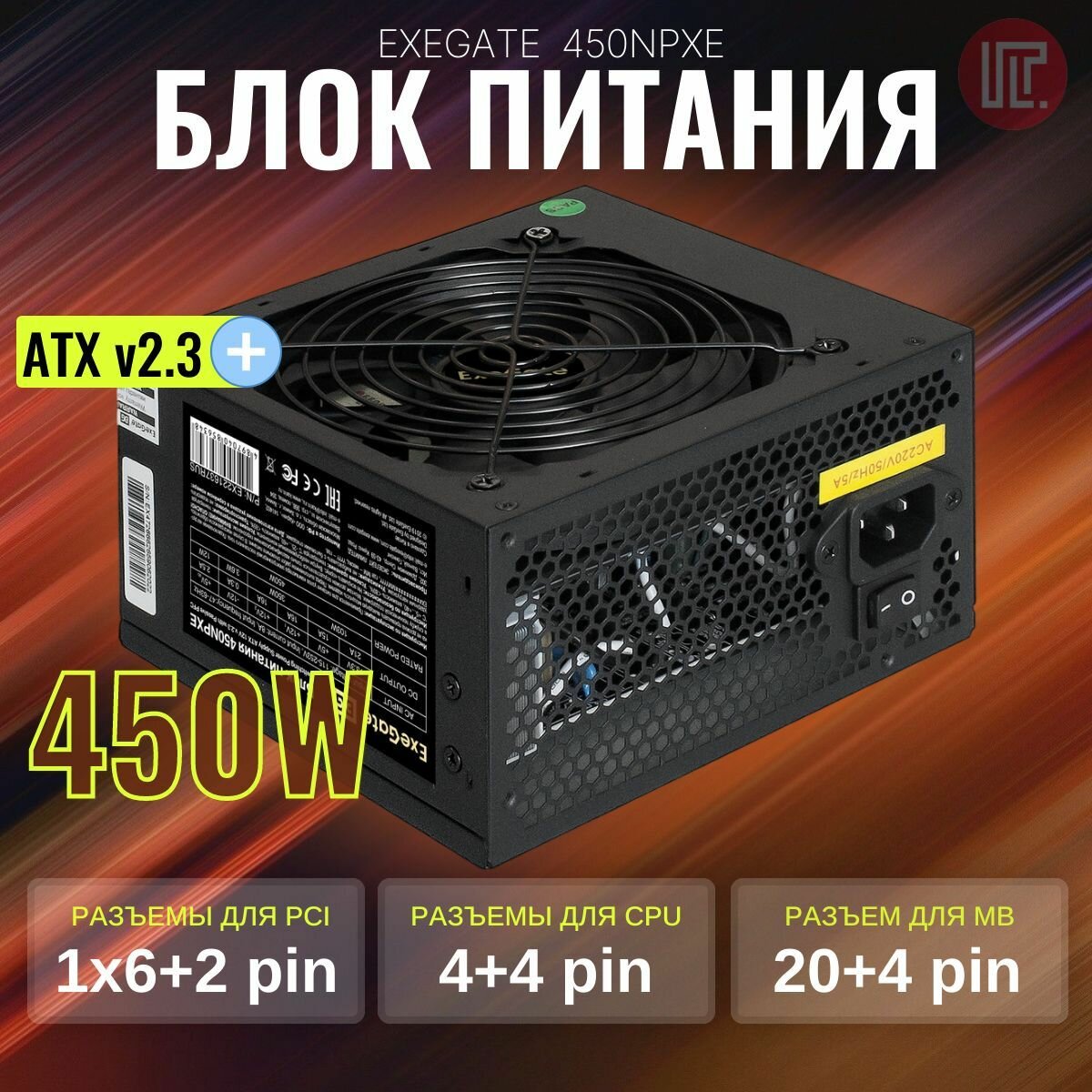 Блок питания 450W ExeGate ATX-450NPXE (ATX12V 2.3, 20+4 pin, no PFC, Fan 120mm) (EX221637RUS)