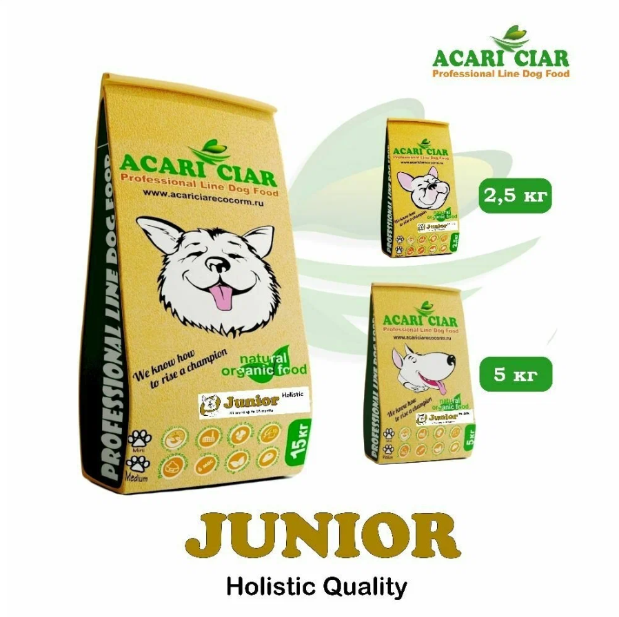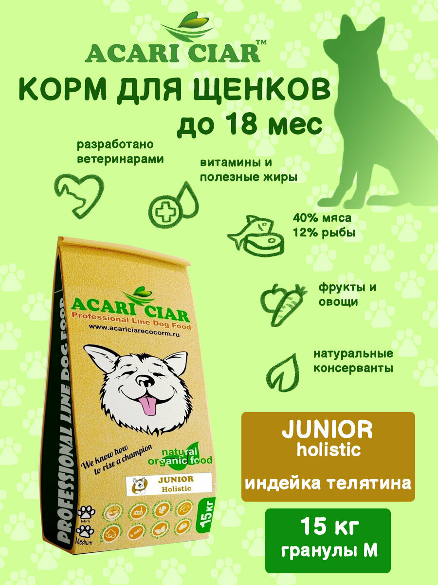 Корм сухой для щенков Acari Ciar JUNIOR HOLISTIC 15 кг (медиум гранула)