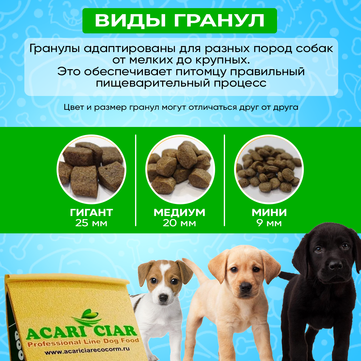 Сухой корм Acari Ciar для щенков с 6 до 18 месяцев Junior0,5 кг (гранула Медиум)