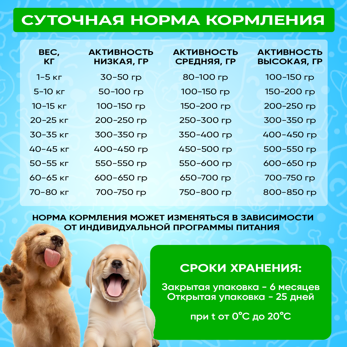 | Возраст животного | взрослые (1-6 лет) / щенки (до 1 года) |