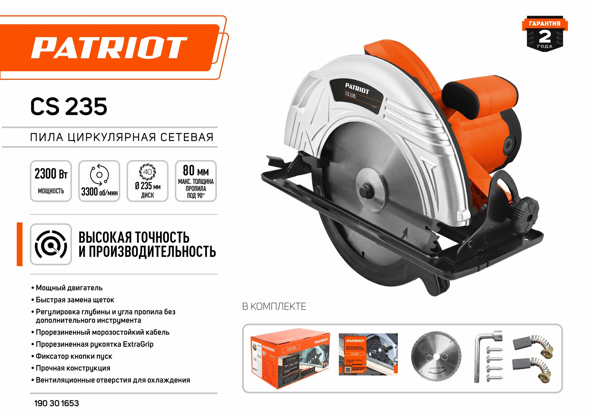 Дисковая пила PATRIOT CS 235, 2300 Вт