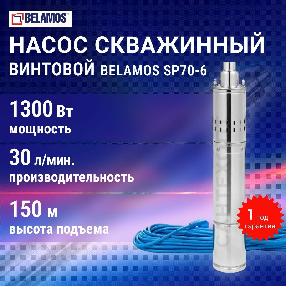 Насос скважинный Belamos SP 70/6 - 1,3 кВт (однофазный, Qmax 30 л/мин, Hmax 150 м, кабель 20 м)