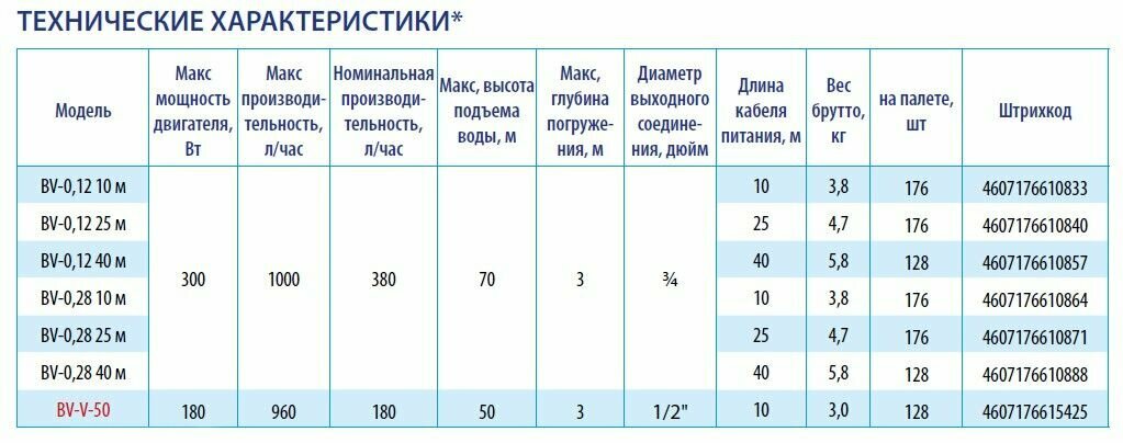 Насос колодезный Belamos Сверчок BV-0,28 (Qmax 16 л/мин,Hmax 70 м, верхний забор воды, кабель 10 м.)