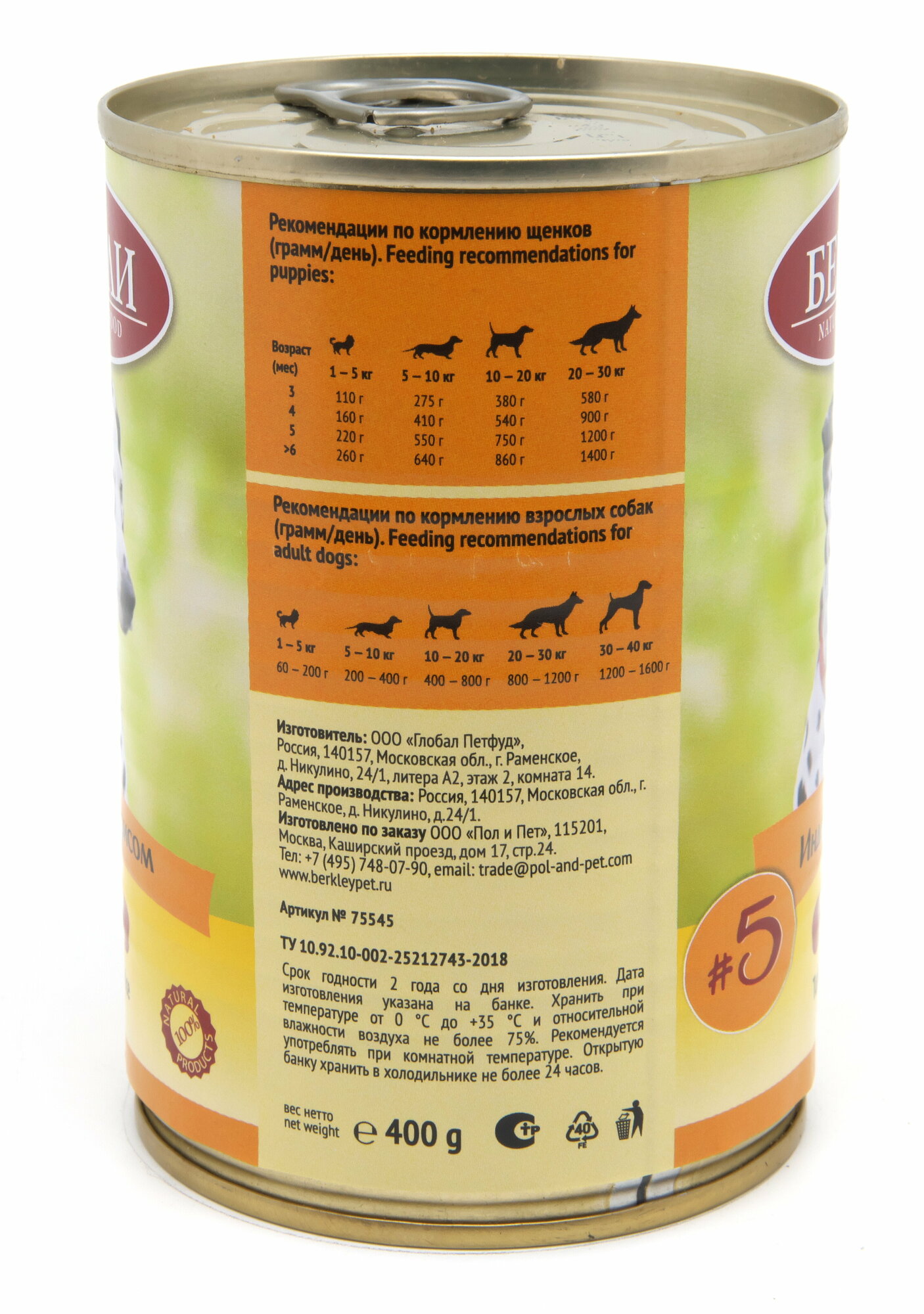 Беркли №5 влажный корм для взрослых собак и щенков, индейка с рисом - 400 г x 6 шт интересное: