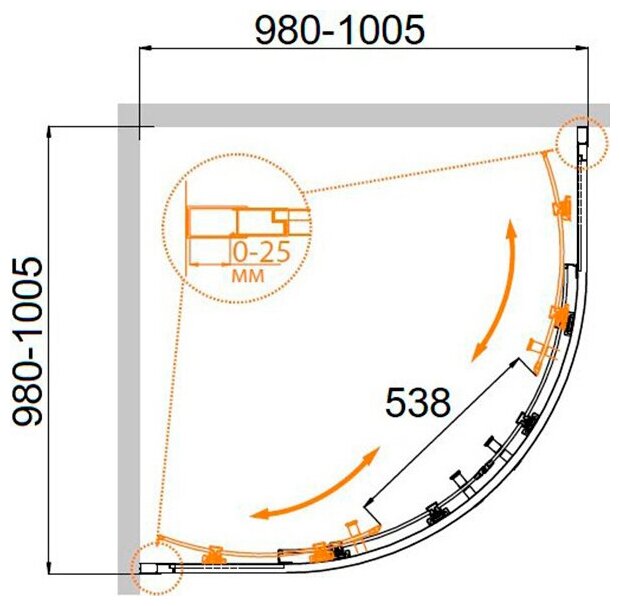 Купить MOLVENO-R-2-100-P-Cr Душевой уголок