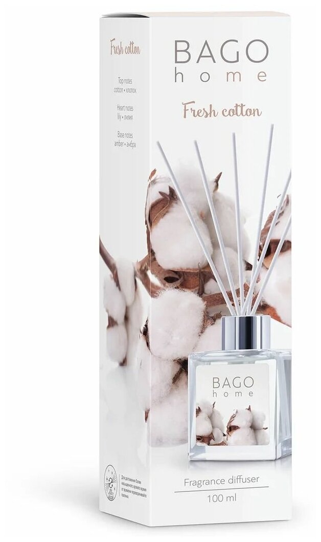 Ароматический диффузор BAGO home Свежий хлопок 100 мл интересное: