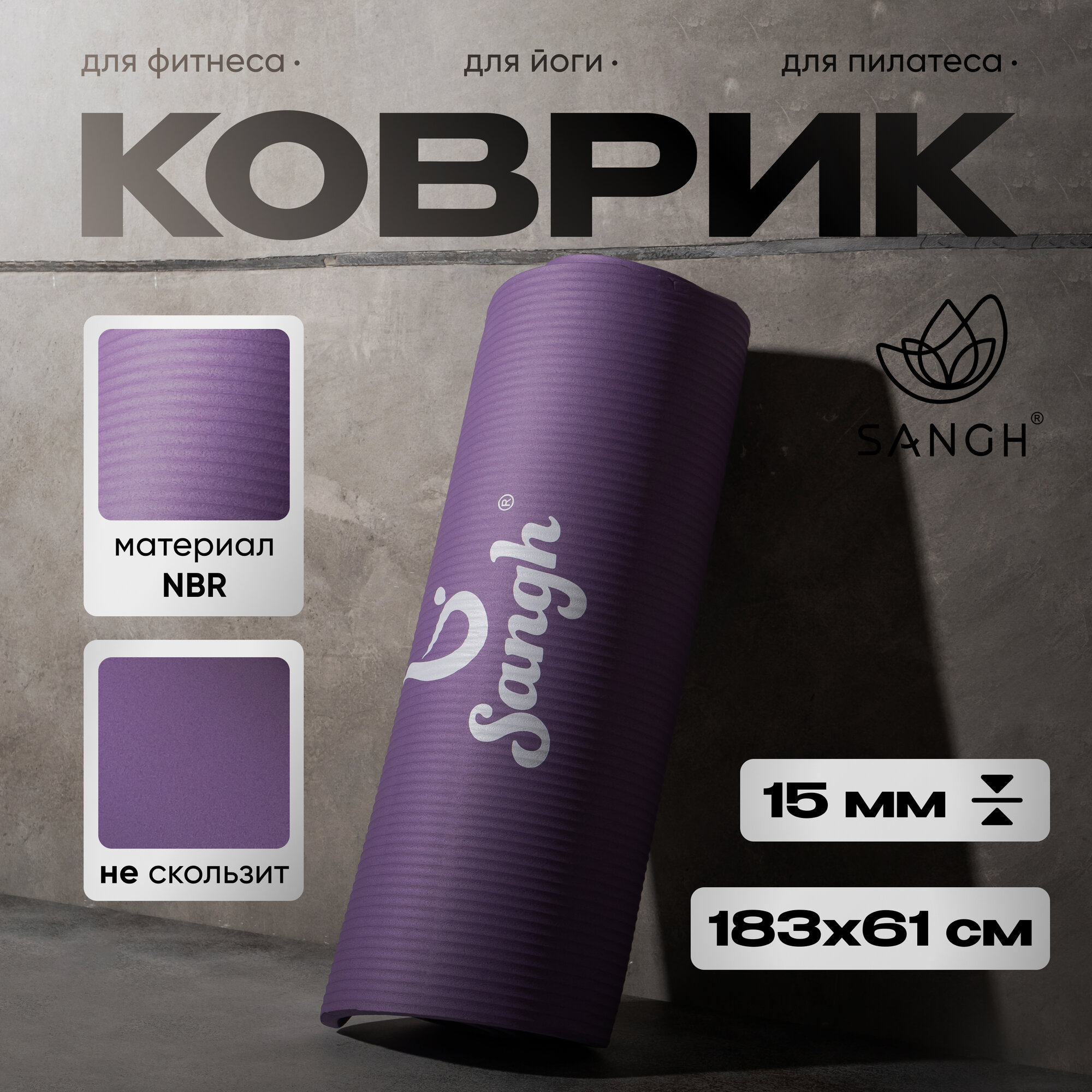 Коврик Sangh, для йоги, размер 183 х 61 х 1,5 см, цвет фиолетовый