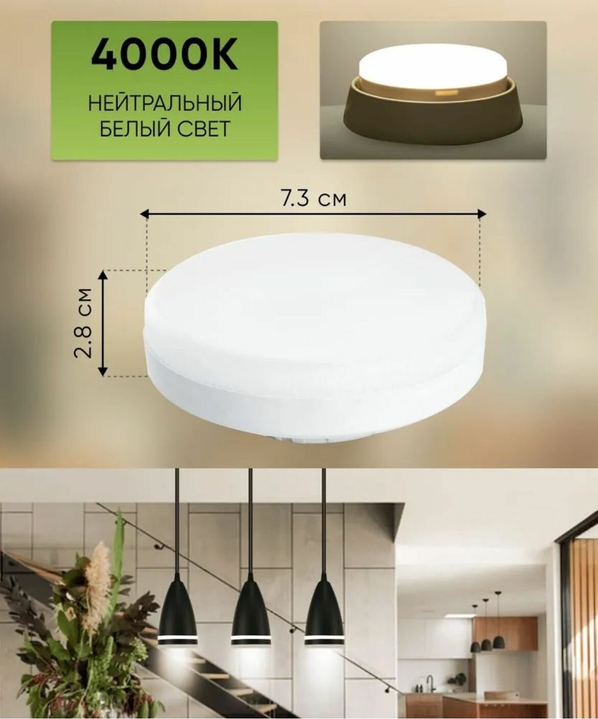 Лампа cветодиодная, (12W) 230V GX53 4000K, LB-453 5шт