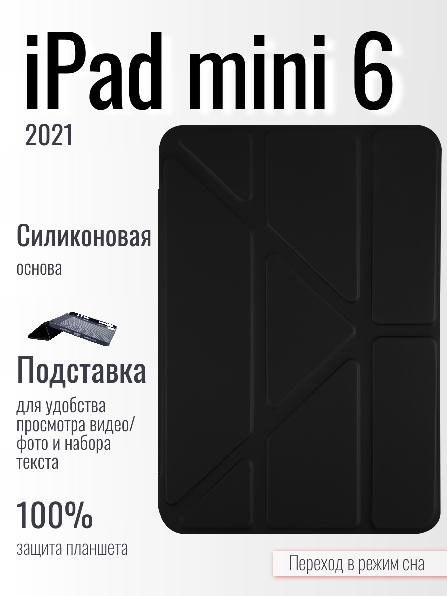 Защитный чехол-книжка с силиконовой крышкой для планшета iPad Mini 6/Эппл Айпад мини 6 (2021), черный